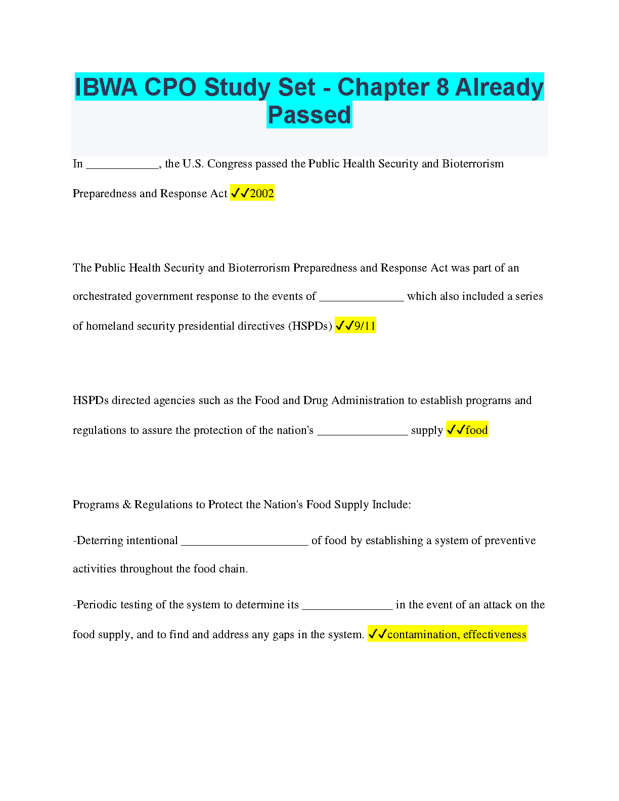 This study guide for Chapter 8 of the IBWA CPO Study Set will help you ace your exam and avoid resits. The guide covers all the essential concepts and information you need to know.