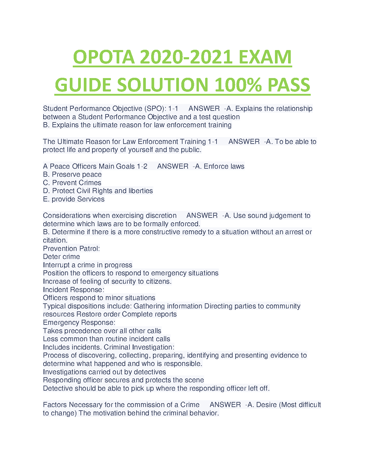 Ace your OPOTA 2020-2021 exam with this comprehensive guide solution. This resource covers all key concepts, provides clear explanations, and includes detailed answers to help you achieve a 100% pass rate on your first attempt.