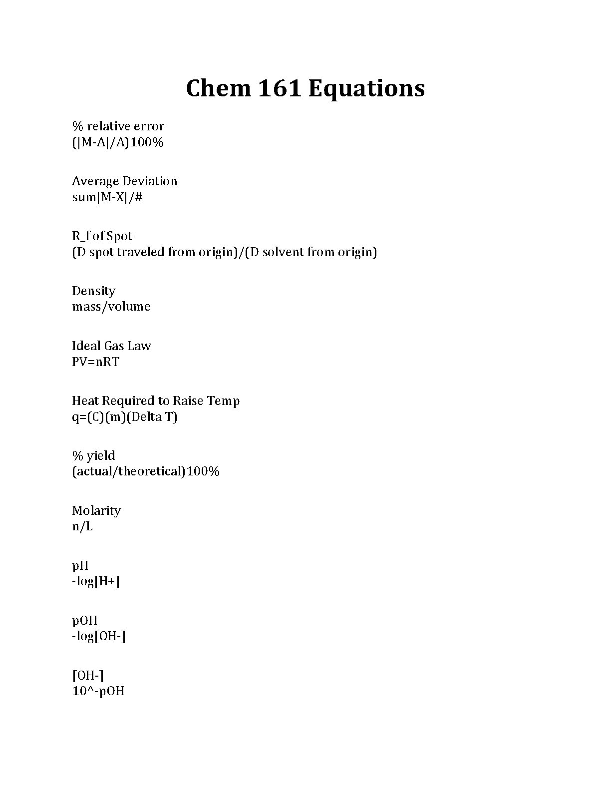This resource is a comprehensive guide to the essential equations used in Chemistry 161. It covers a wide range of topics, from basic calculations to more advanced concepts. This guide is designed to help you achieve a deeper understanding of the subject matter and prepare you for success in your Chemistry 161 exams.