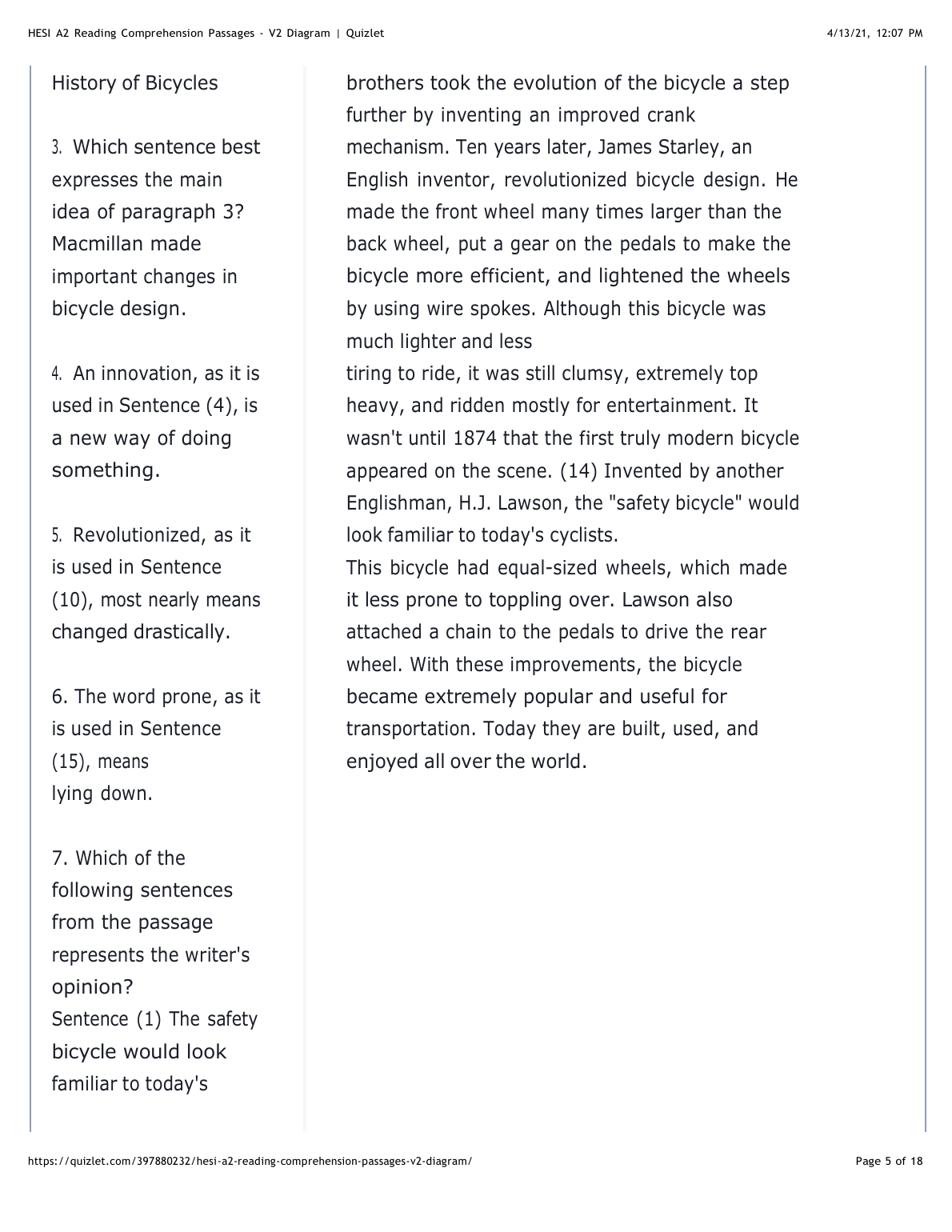 HESI A2 Quizlet Reading Comprehension Passages - V2 COMPLETE SOLUTION RATED A+