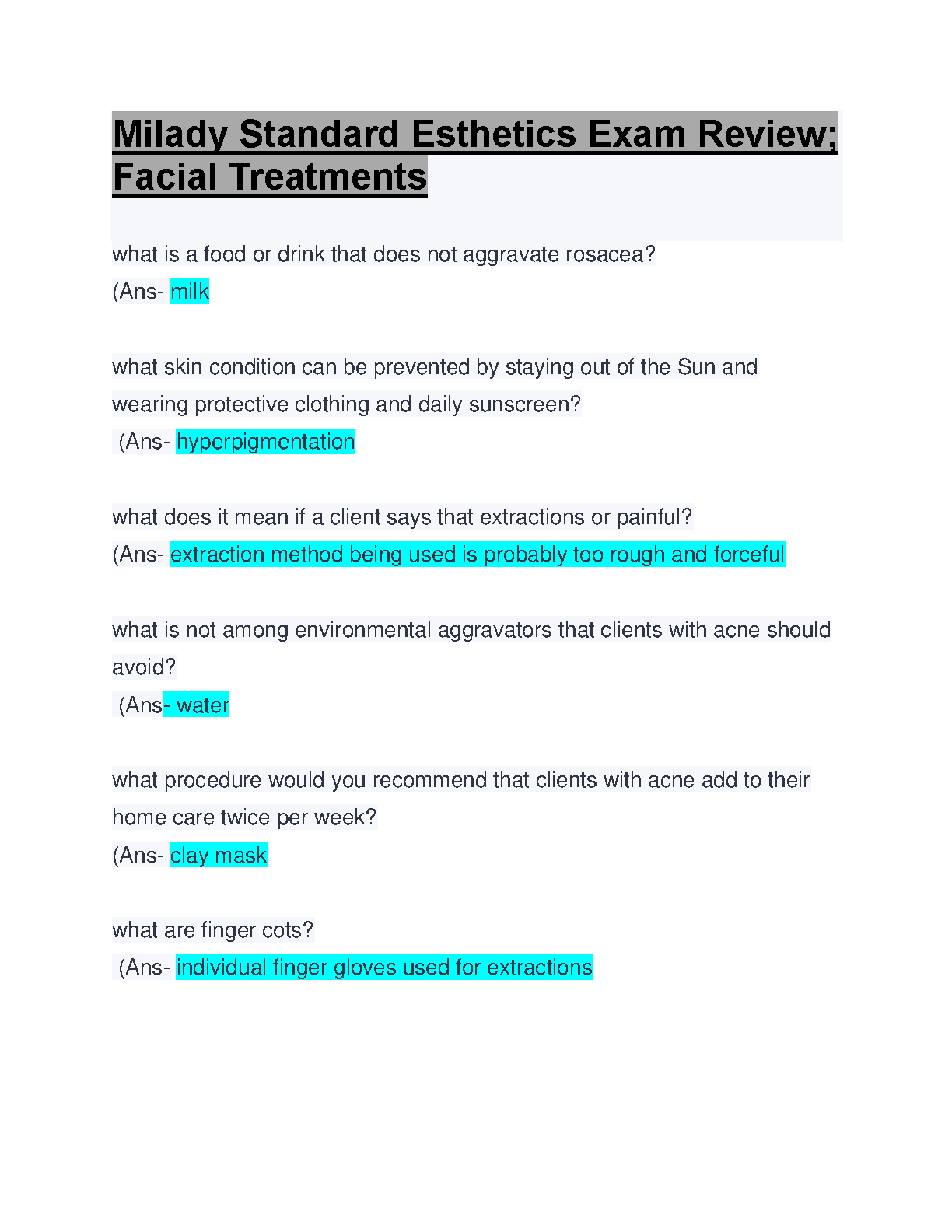 Milady Standard Esthetics Exam Review: Facial Treatments for 2024/2025 Exams