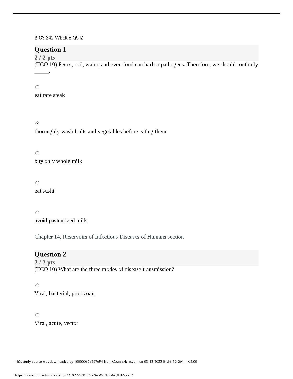 BIOS 242 Week 6 Quiz - Ace Your Microbiology Exams with This Resource for 2024/2025!