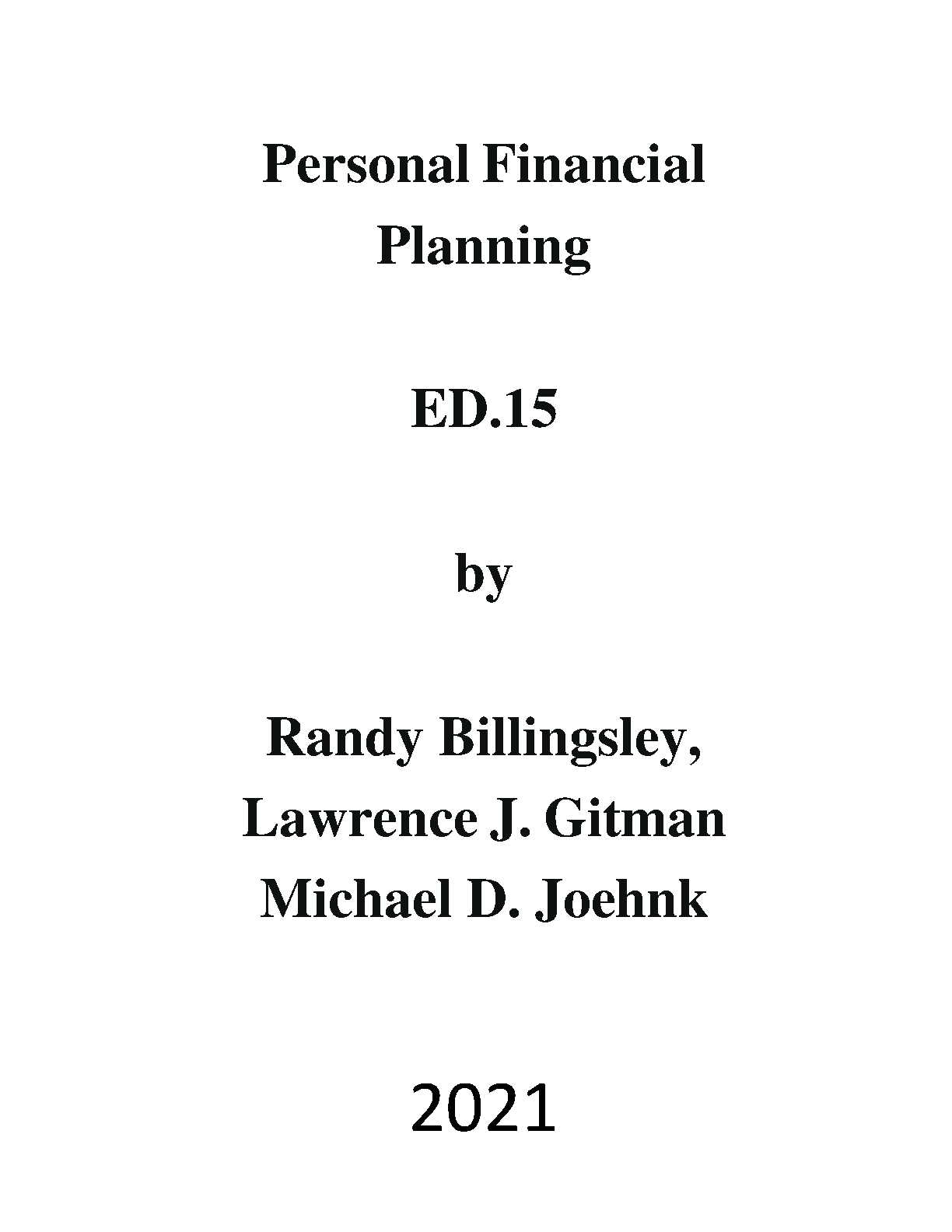 Personal Financial Planning 15th Edition Test Bank by Billingsley, Gitman, Joehnk