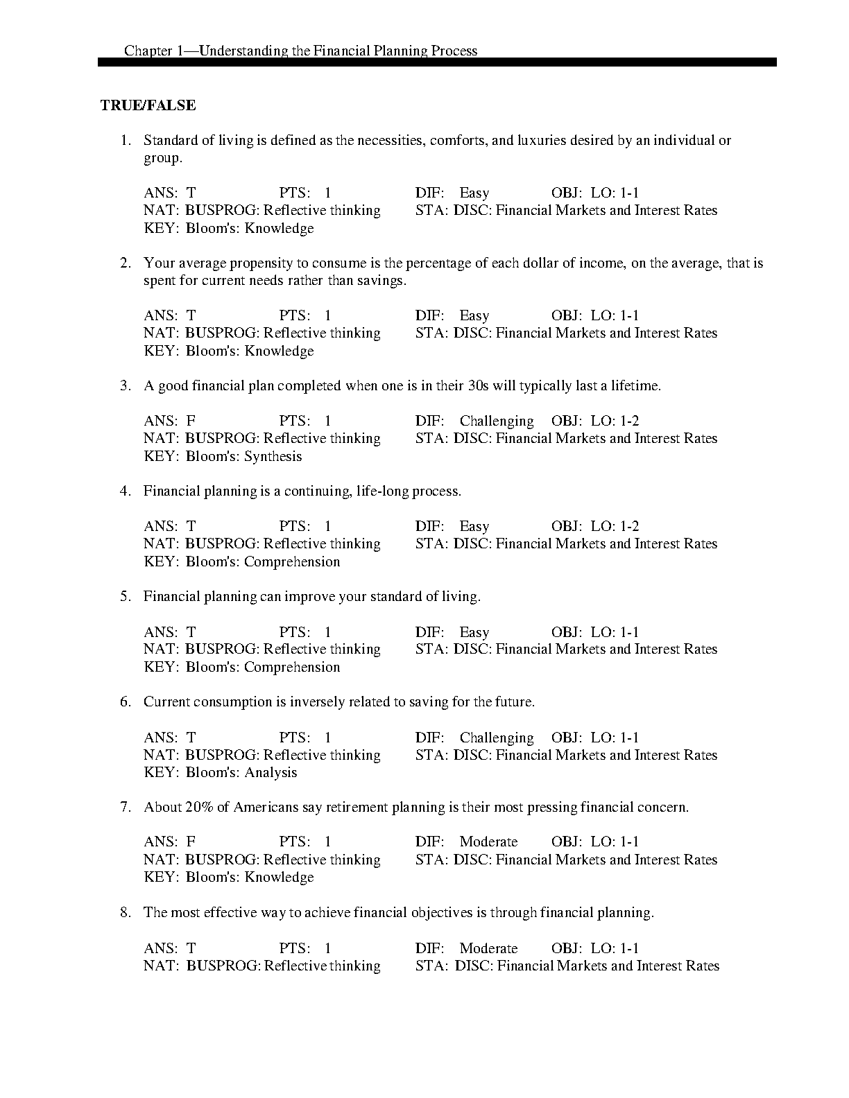 This comprehensive test bank is designed to help students ace their personal finance exams. It contains a wide range of challenging questions covering all topics from the 15th edition of Personal Financial Planning by Billingsley, Gitman, and Joehnk.