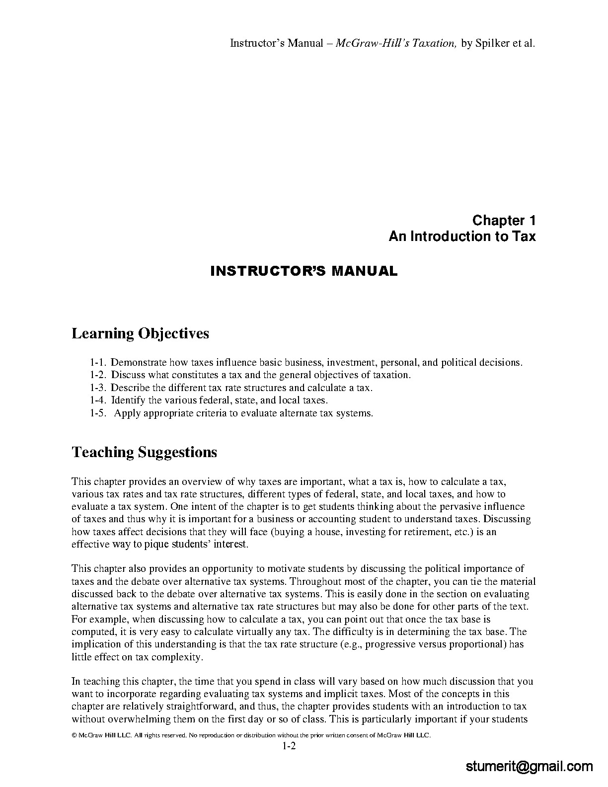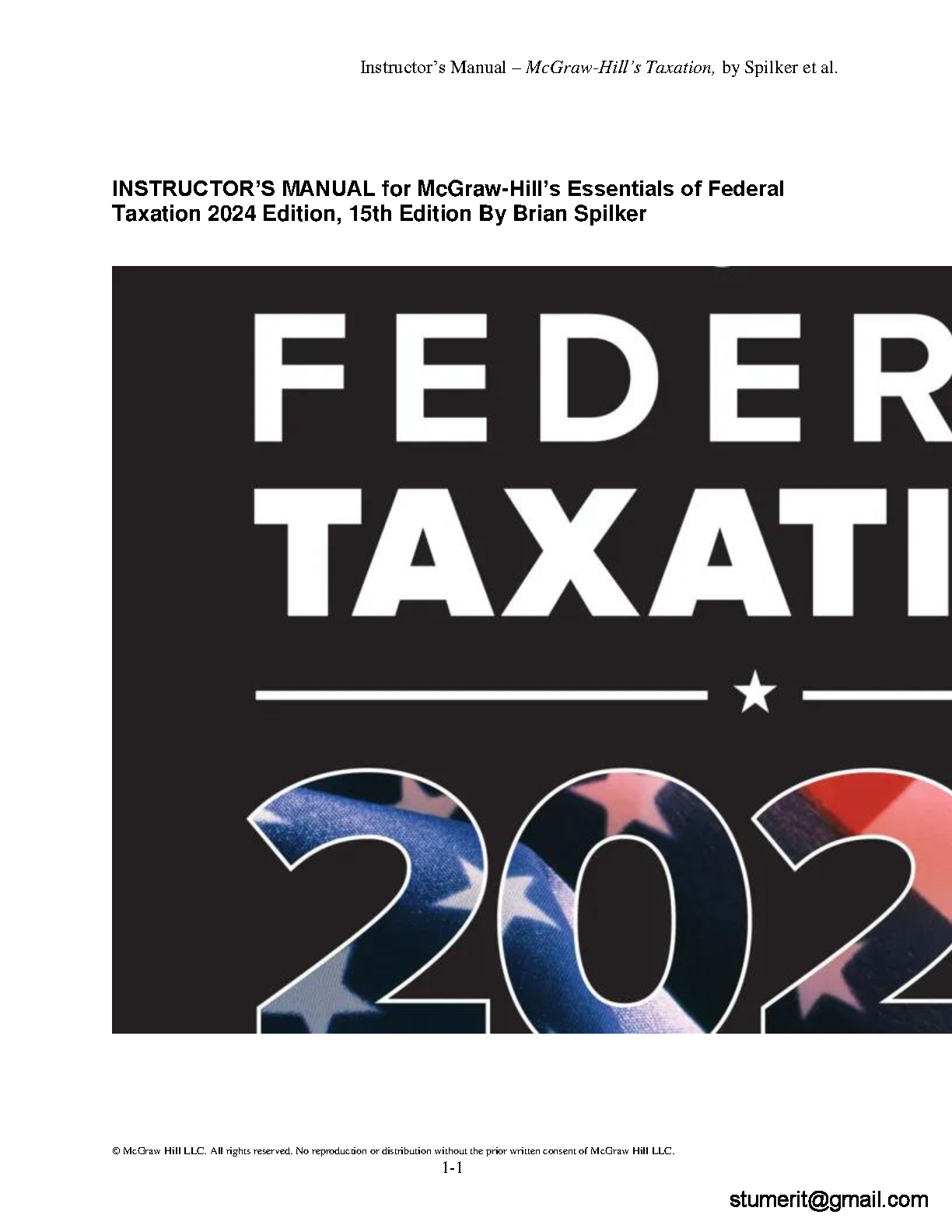 INSTRUCTOR’S MANUAL for McGraw-Hill’s Essentials of Federal Taxation 2024 Edition, 15th Edition By Brian Spilker