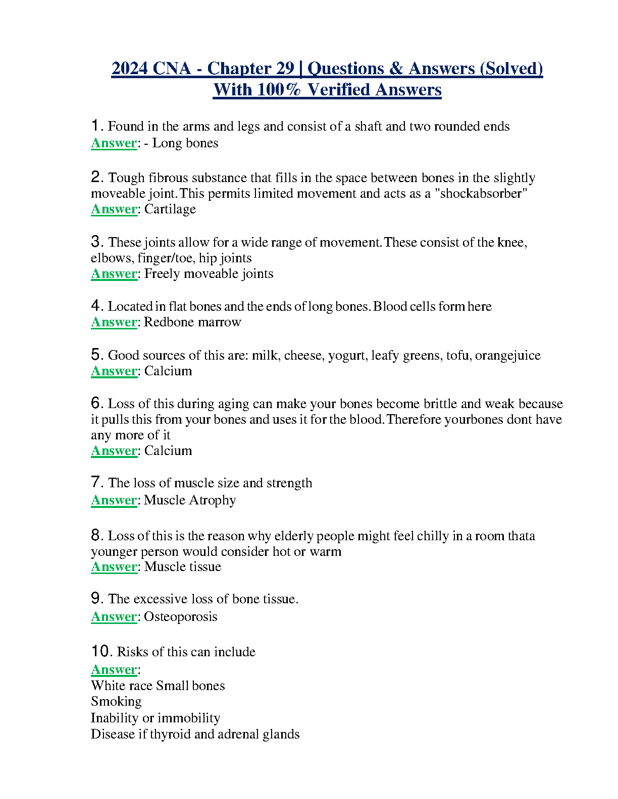2024 CNA - Chapter 29 | Questions & Answers (Solved) With 100% Verified Answers - Latest Edition