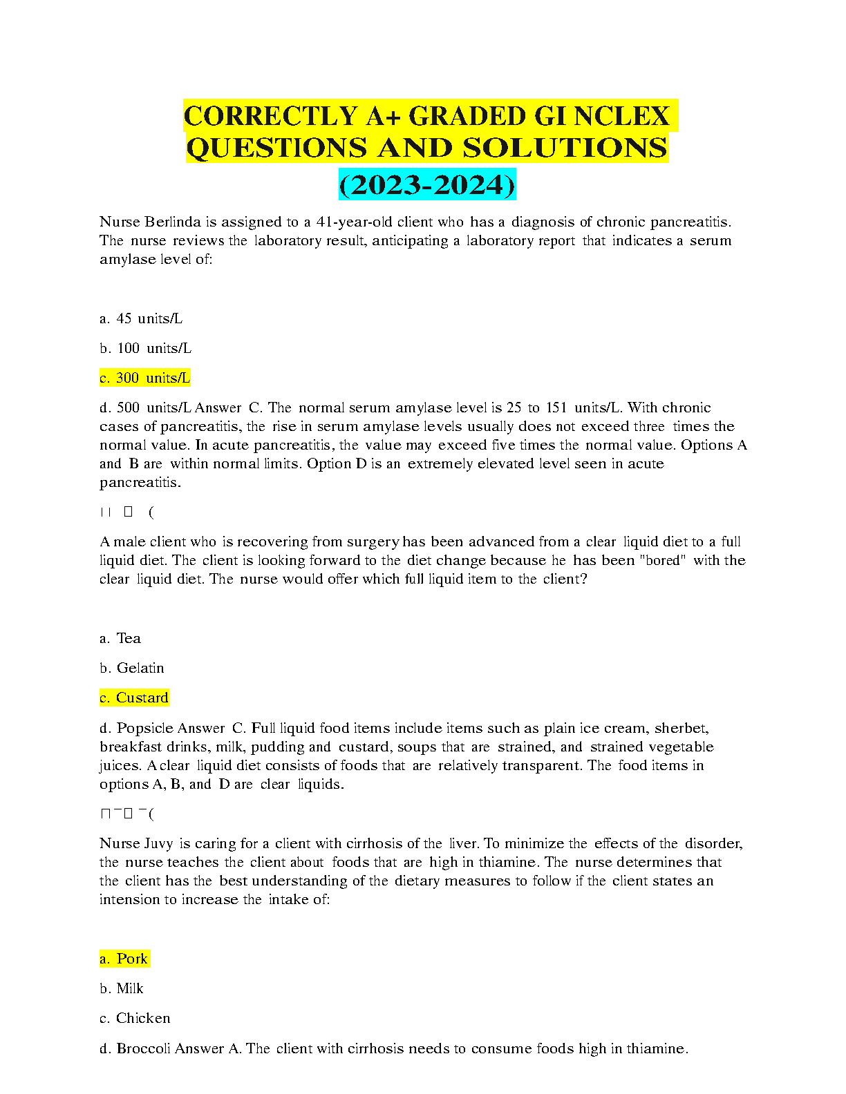Ace your NCLEX-RN exam with our latest 2023-2024 edition of NCLEX-RN Exam Questions and Solutions. This comprehensive resource provides practice questions with detailed explanations to help you master the concepts and confidently pass on the first attempt.