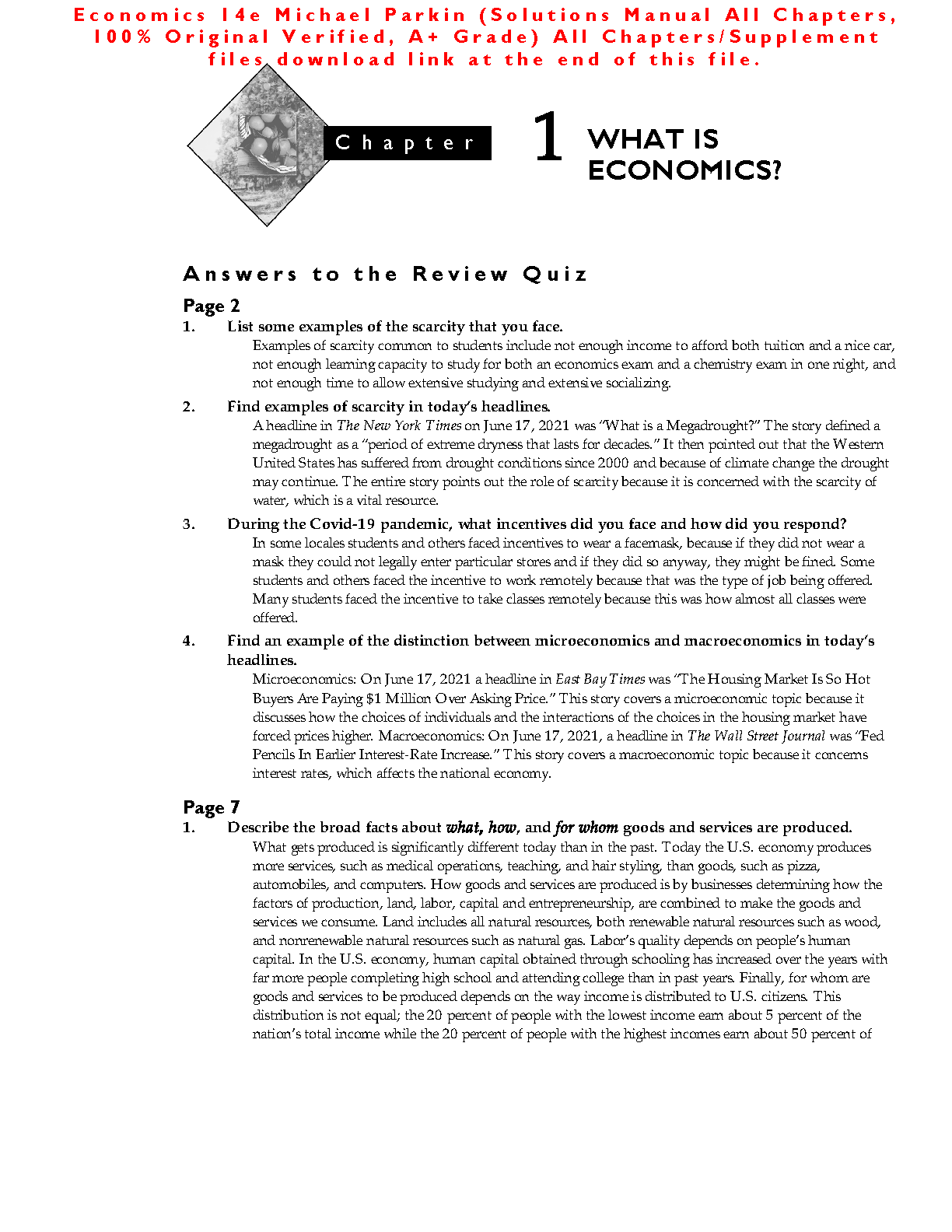 Economics 14e Michael Parkin (Solutions Manual All Chapters, 100% Original Verified, A+ Grade) All Chapters/Supplement files download link at the end of this file.