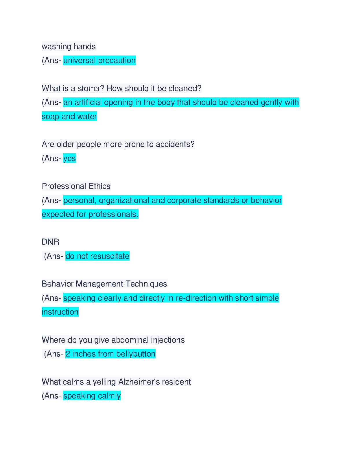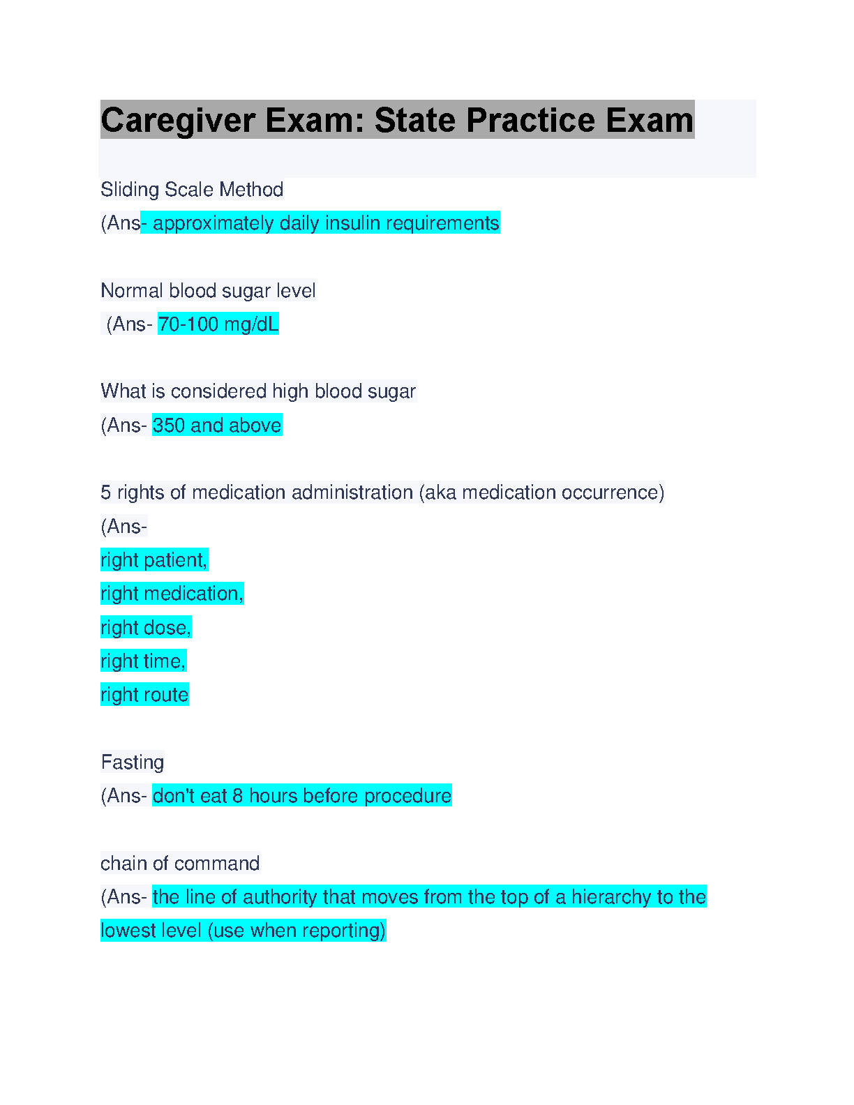 Ace your Caregiver Exam with this comprehensive practice exam designed to help you pass on the first attempt. Master key concepts and practice real-life scenarios with comprehensive questions and answers.