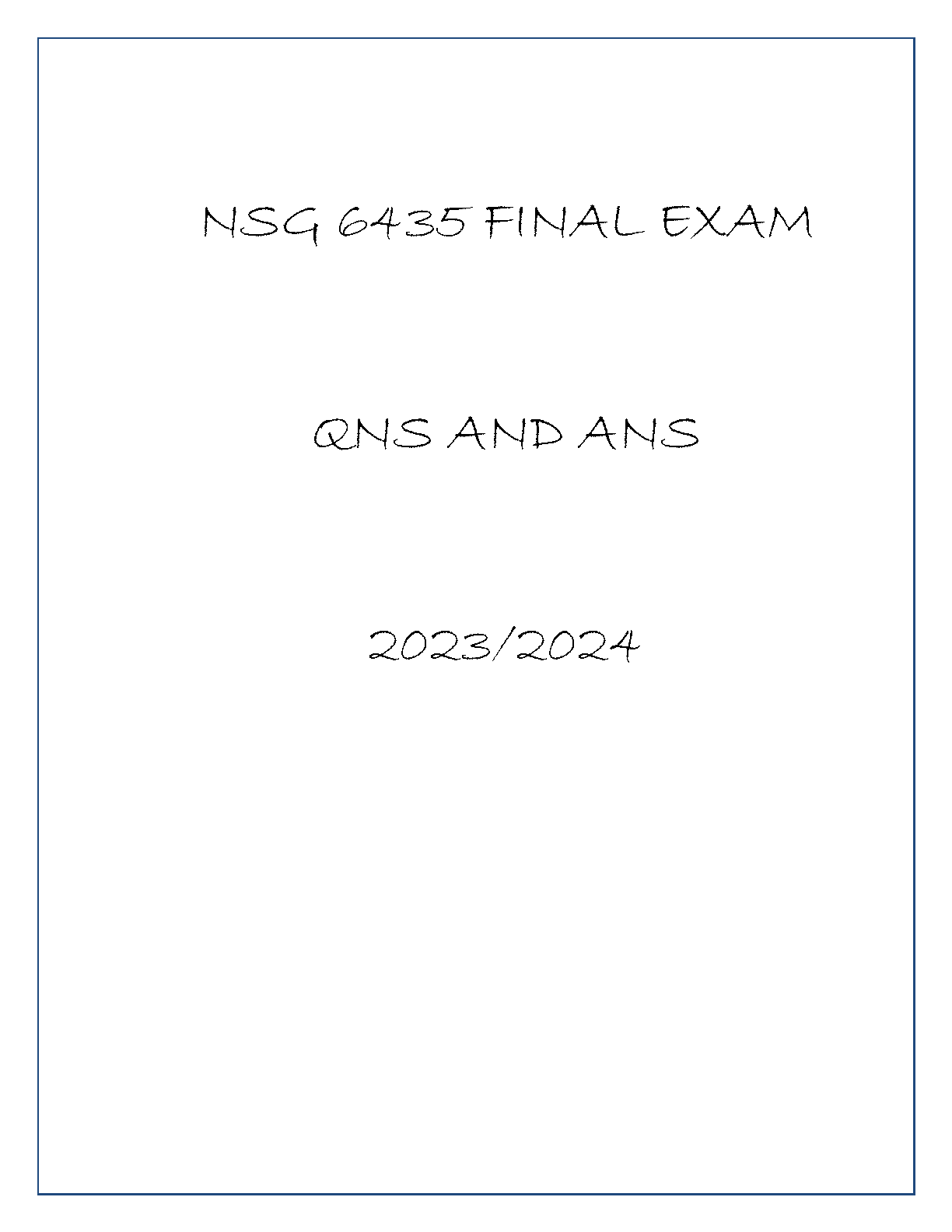 NSG 6435 Final Exam Questions and Answers for 2024/2025