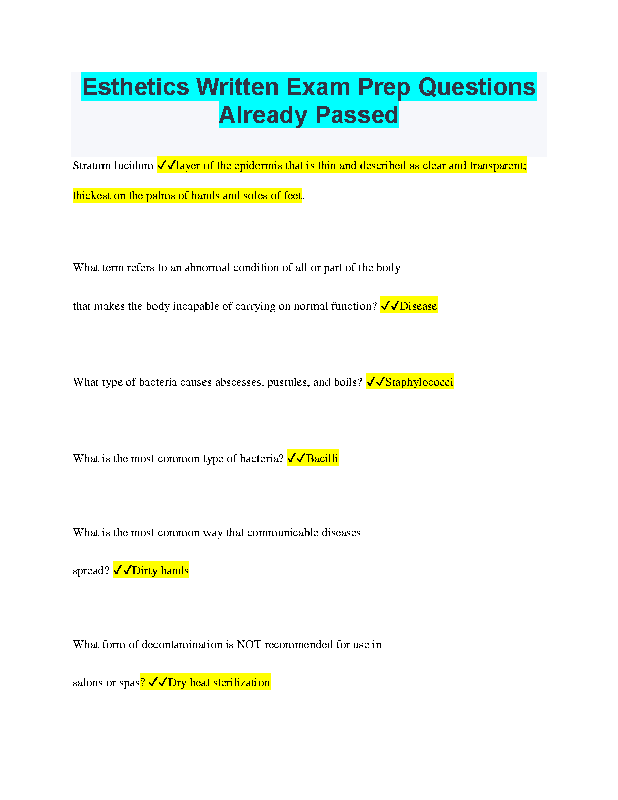 Boost your confidence and pass your Esthetics exam with flying colors! This comprehensive study guide provides in-depth practice questions and answers covering all the essential topics. Get ready to ace your exam and launch your successful career in the beauty industry!