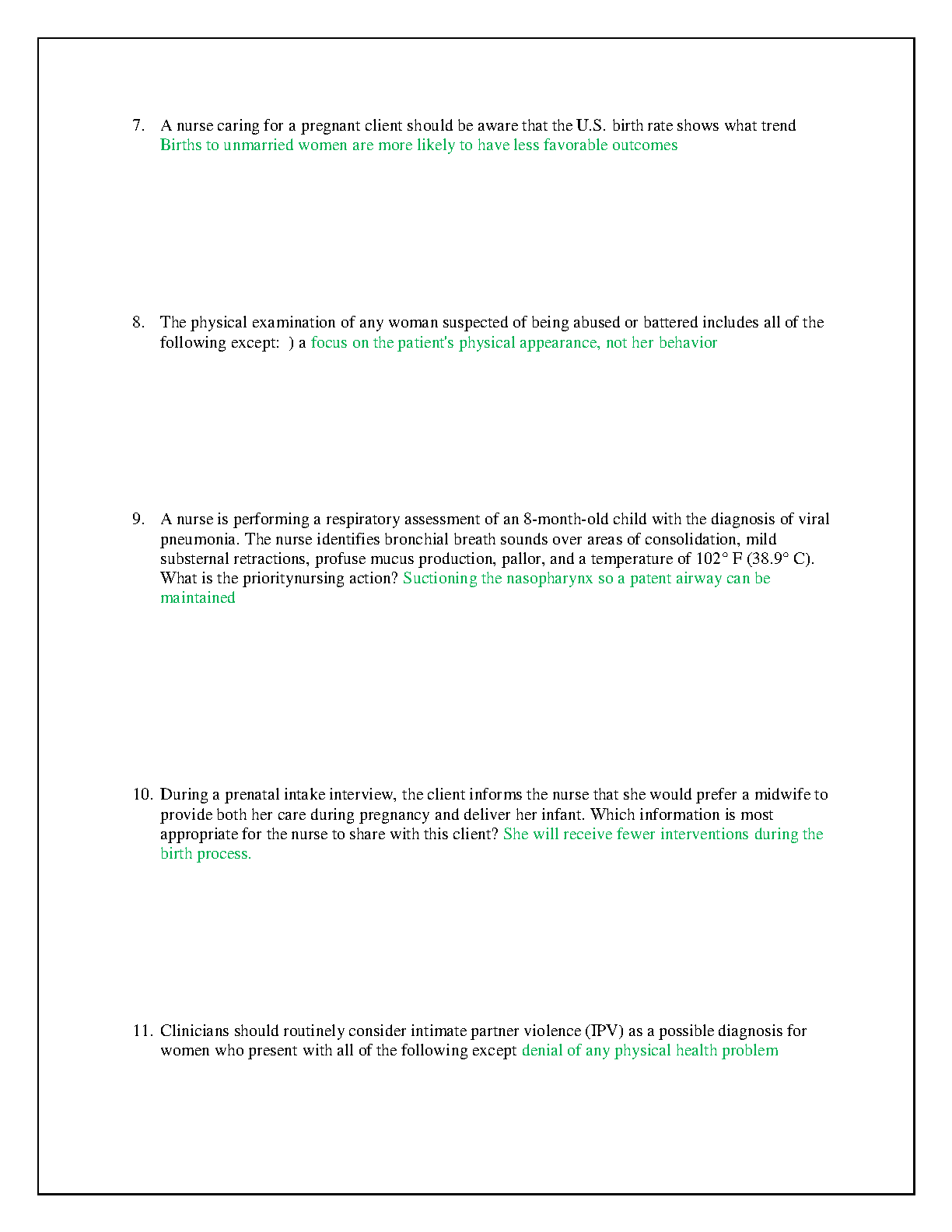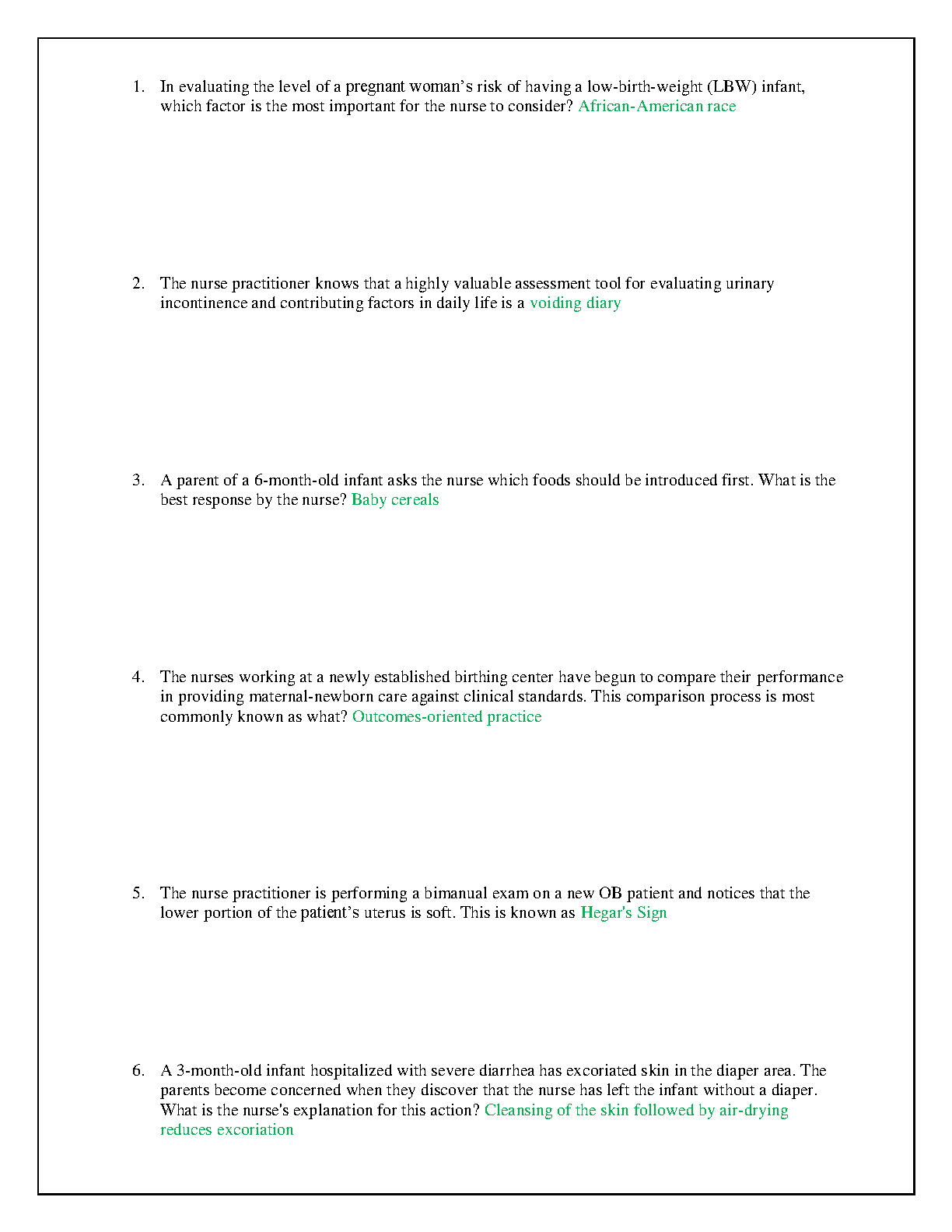 Women's and Infant Health Assessment Q&A - 2 Versions (2023/2024)