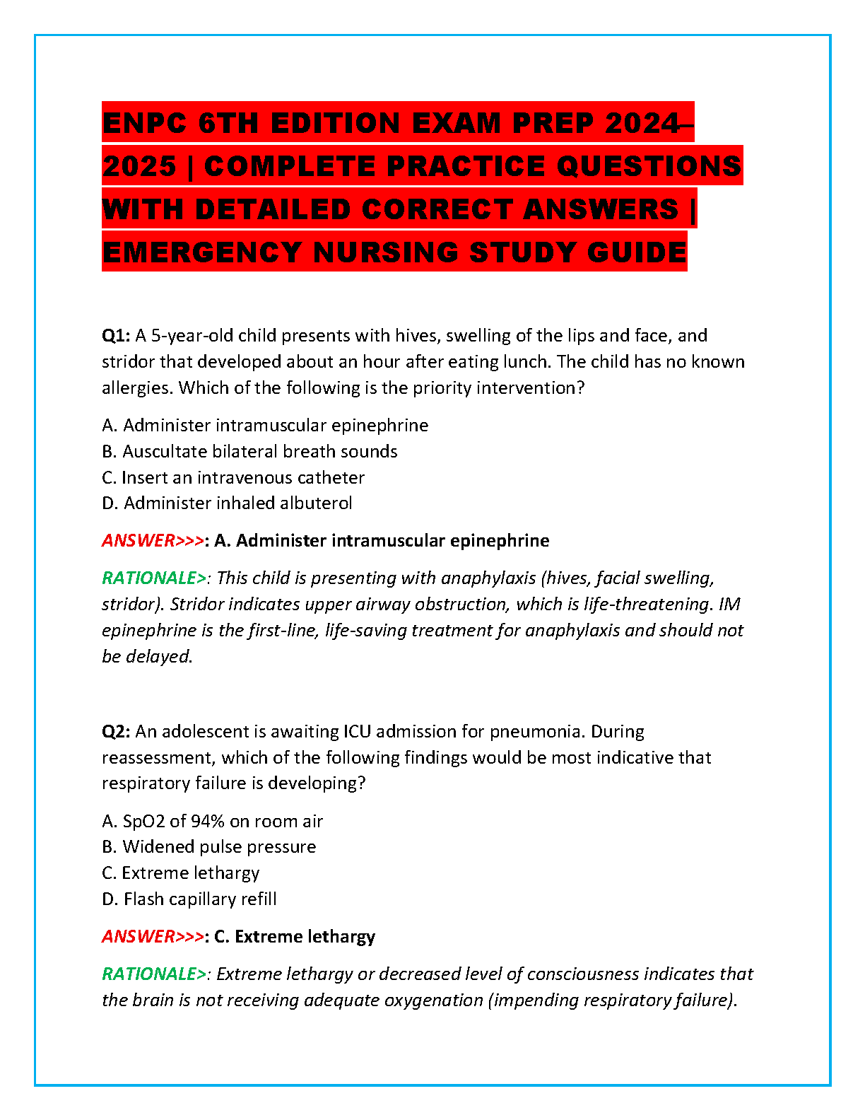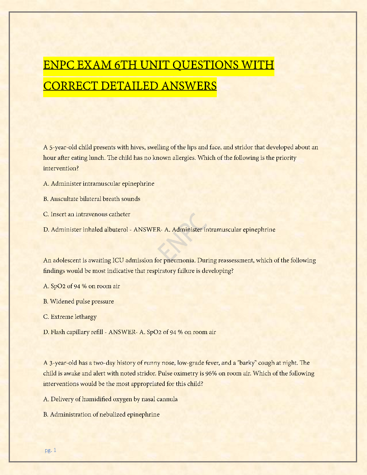 ENPC Exam 6th Unit Questions With Correct Detailed Answers 2024/2025 - Ace Your Exam On The First Try!