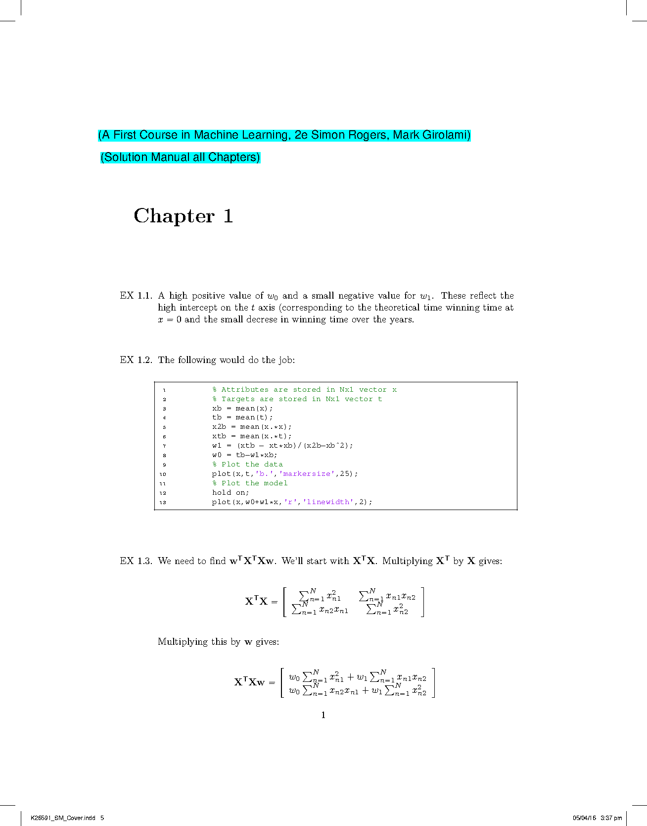 Get ahead in your Machine Learning studies with this comprehensive solution manual for "A First Course in Machine Learning, 2nd Edition" by Simon Rogers and Mark Girolami. This resource provides detailed solutions to all exercises in the textbook, helping you grasp complex concepts and build a solid foundation.