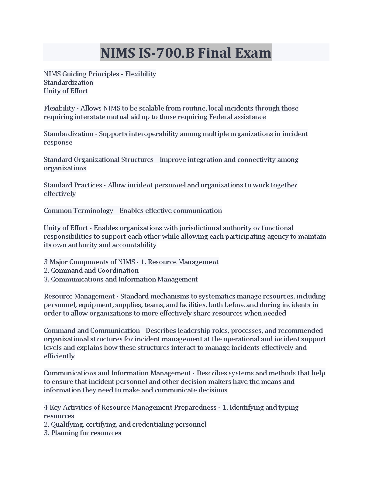 This comprehensive resource contains all the essential information you need to excel in your NIMS IS-700.B Final Exam. Packed with detailed explanations, practice questions, and real-world examples, this study guide is designed to help you master the key concepts and pass your exam with confidence.