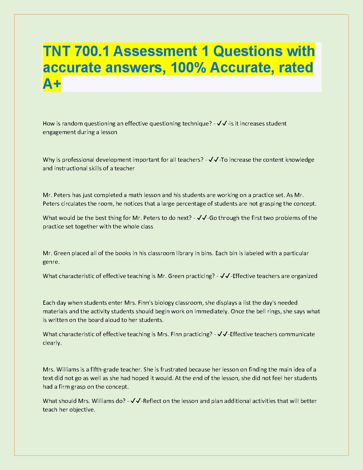TNT 700.1 Assessment 1 Questions with Accurate Answers, 100% Accurate, Rated A+