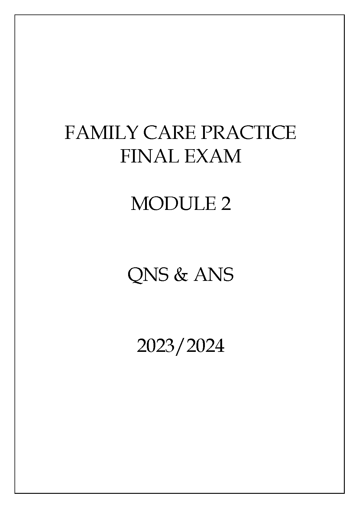 Family Care Practice Final Exam 2023/2024: Questions & Answers, Module 2