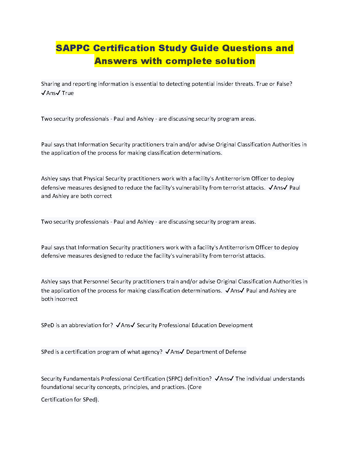 SAPP Certification Study Guide Questions and Answers with complete solution