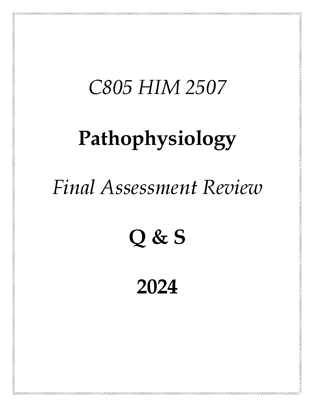 C805 HIM 2507 Pathophysiology Final Assessment Review Q & S Edition 2024 - Ace Your Exams with This Comprehensive Study Guide