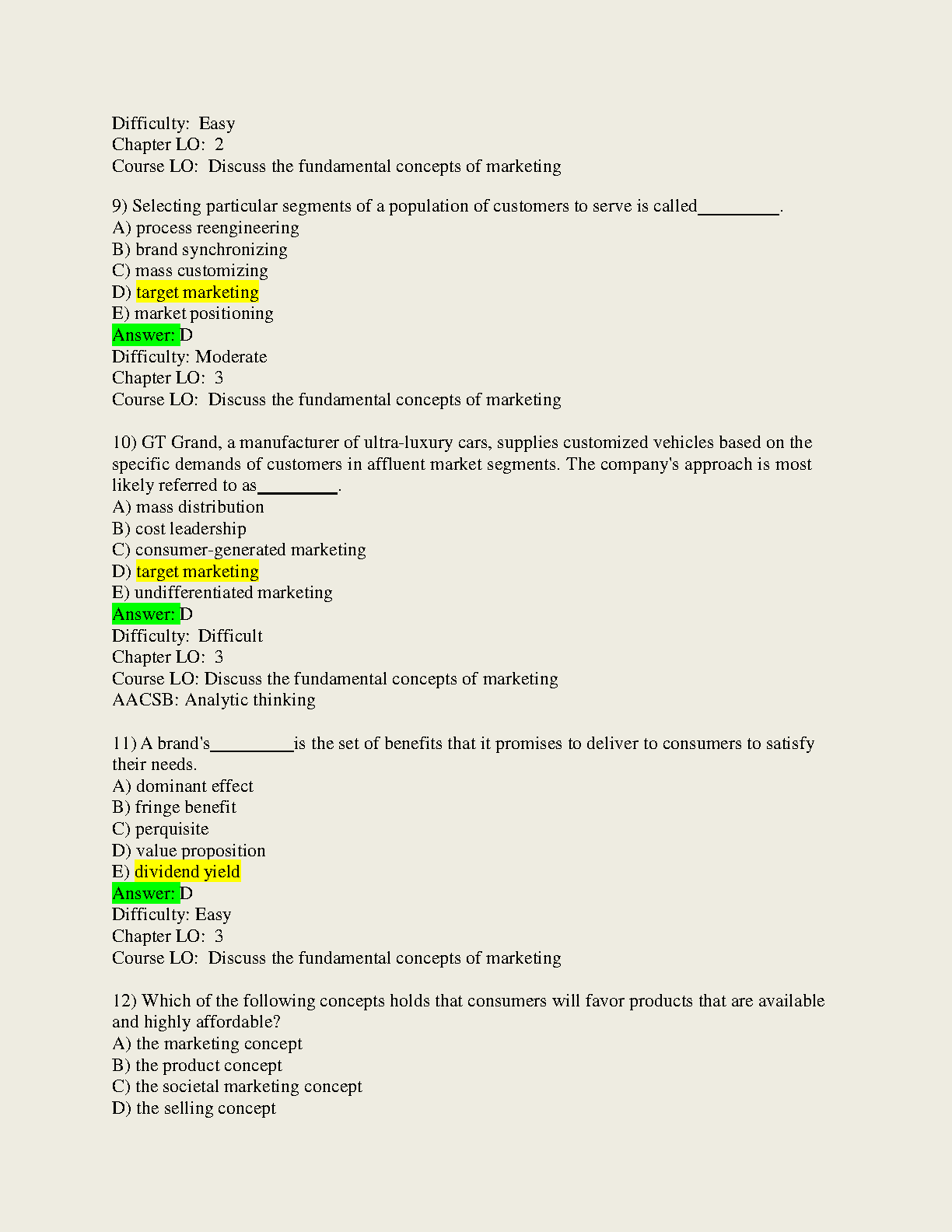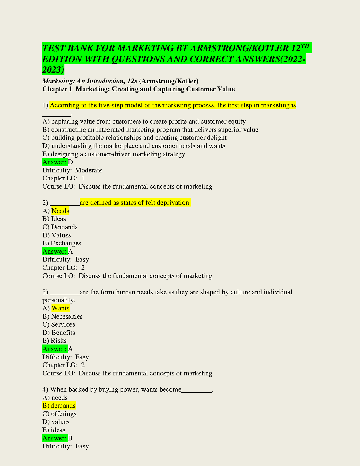 Marketing: An Introduction, 12e (Armstrong/Kotler) Test Bank for Questions and Correct Answers (2022-2023)