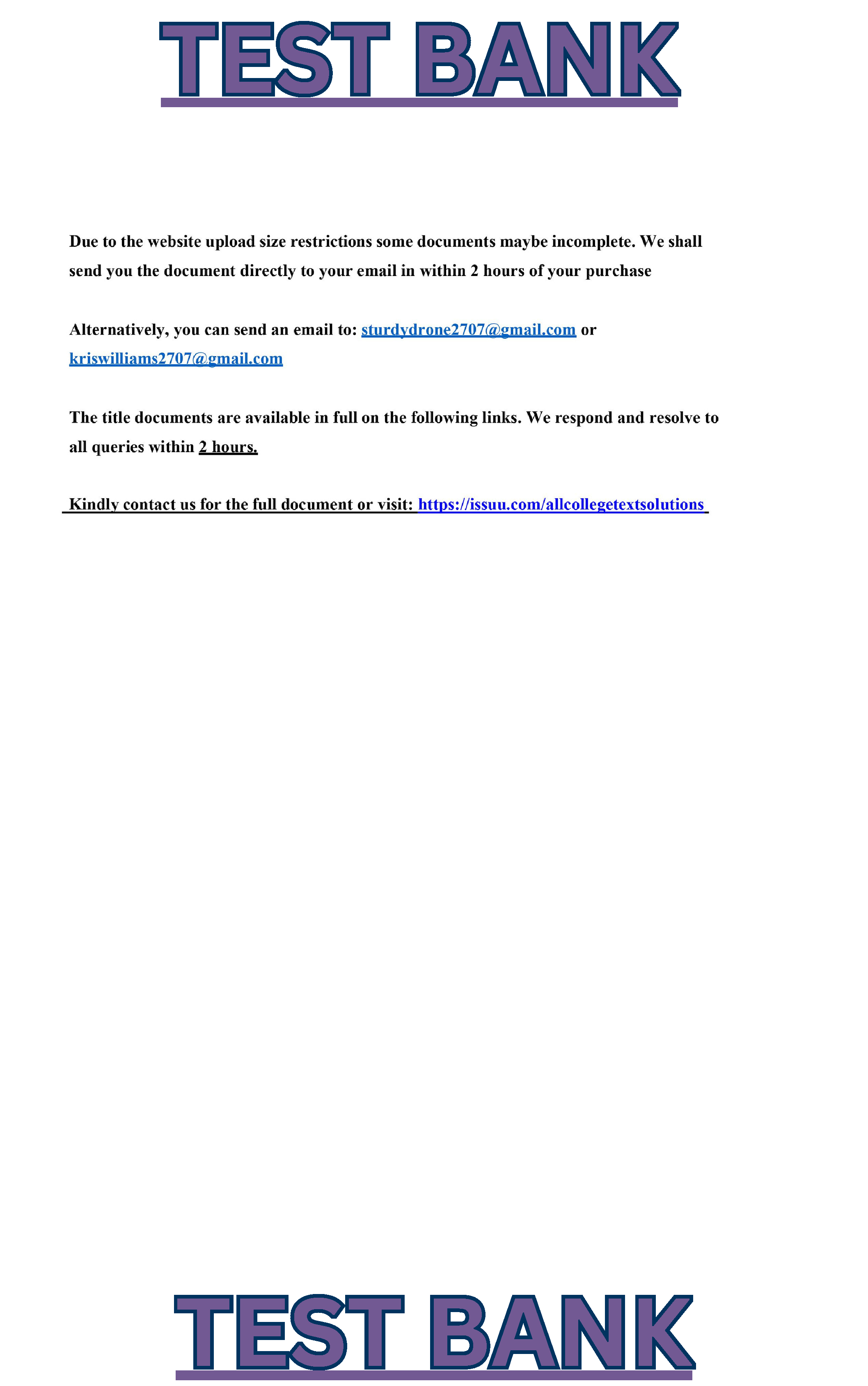 This comprehensive test bank offers a wealth of questions and answers for instructors to assess student understanding of pathophysiology principles. Get ready for the 2024-2025 academic year with this updated test bank for the second edition of Davis Advantage for Pathophysiology by Linda S. Capriotti.