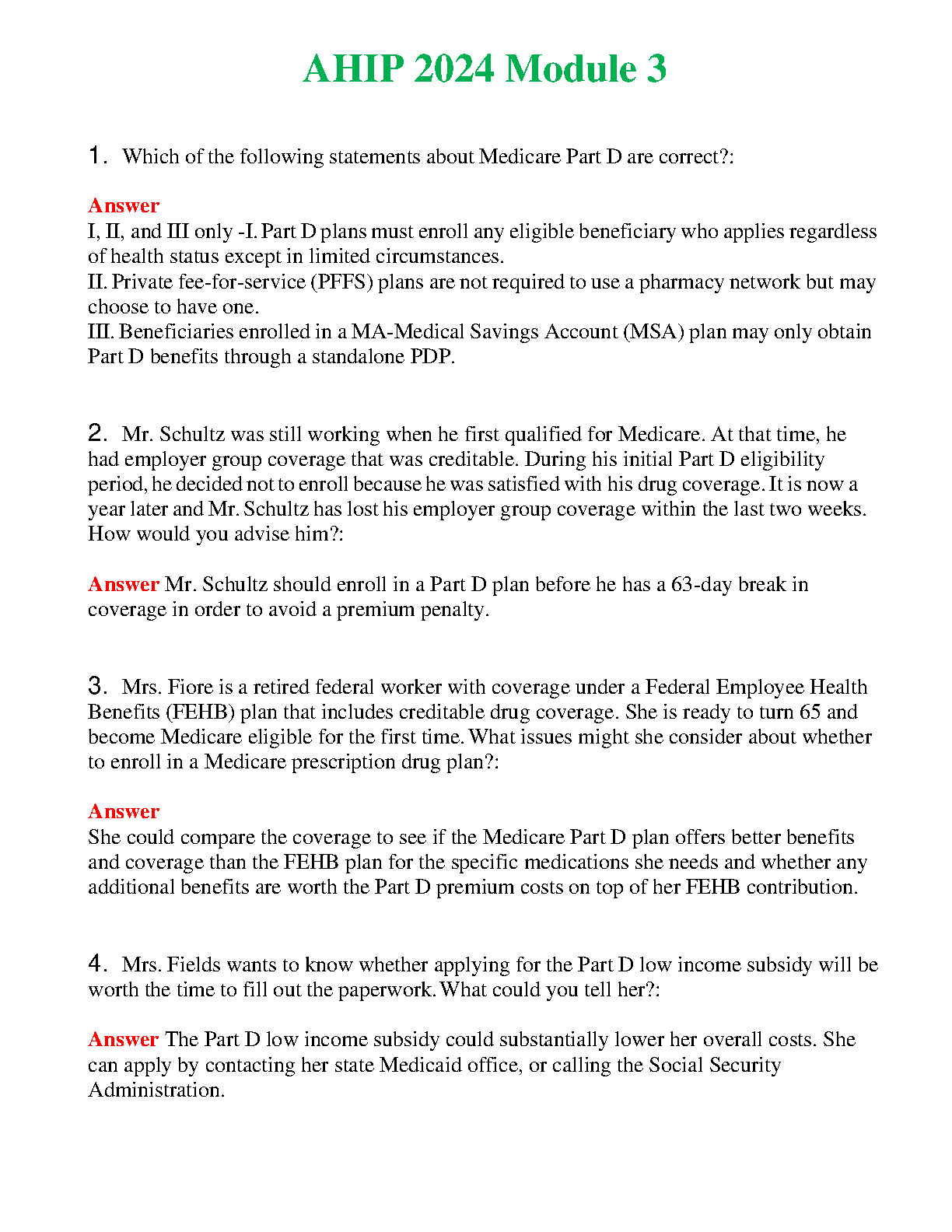 AHIP 2024 Module 3: Comprehensive Guide to Medicare Part D for Exams and Success