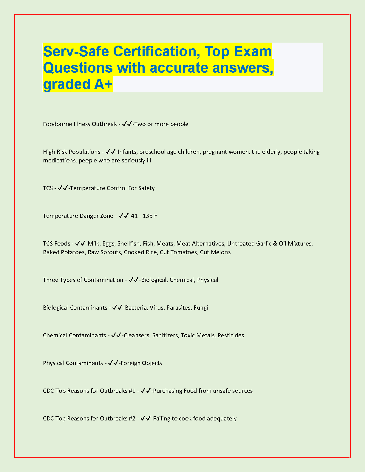 ServSafe Certification, Top Exam Questions with Accurate Answers, Graded A+
