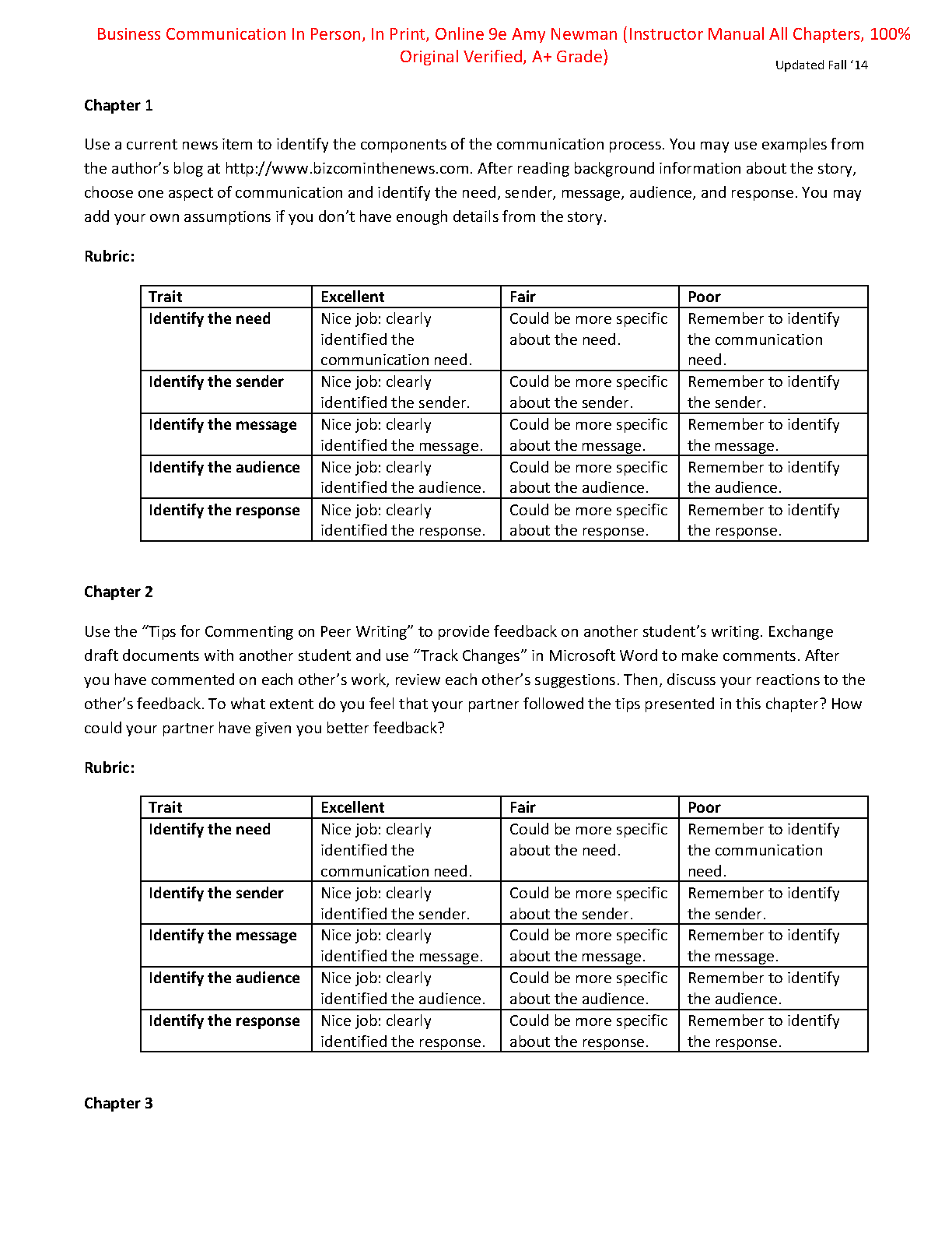 Business Communication in Person, In Print, Online 9e Amy Newman (Instructor Manual All Chapters, 100% Original Verified, A+ Grade)
