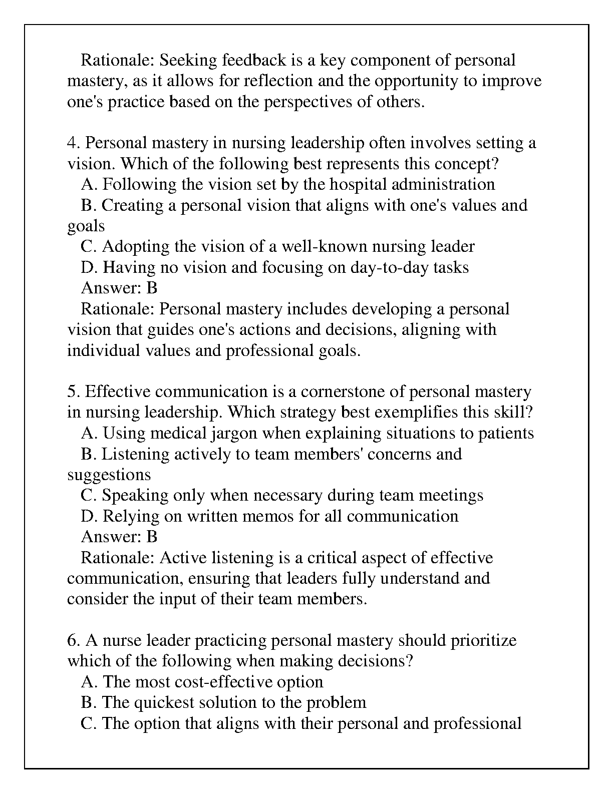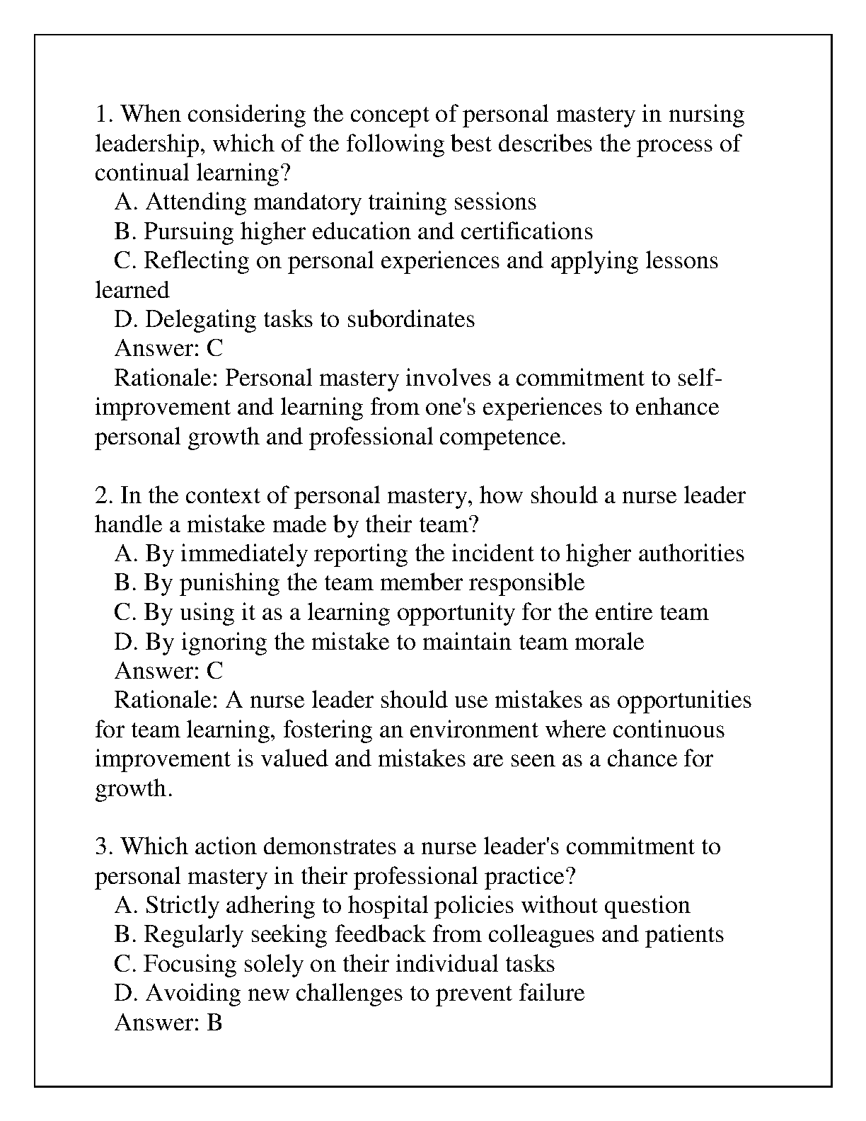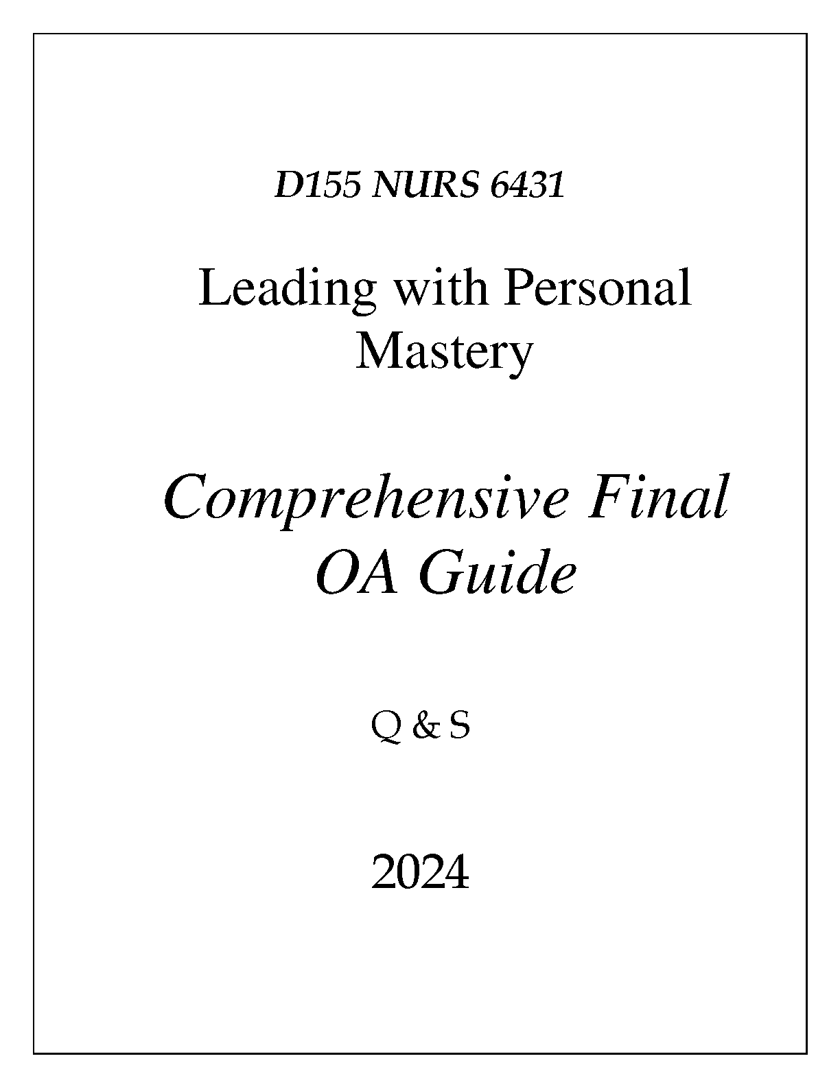 This is a comprehensive guide for the final OA (Objective Assessment) for D155 NURS 6431: Leading with Personal Mastery. It covers all the key concepts and skills you need to know to ace the exam, including questions and answers.