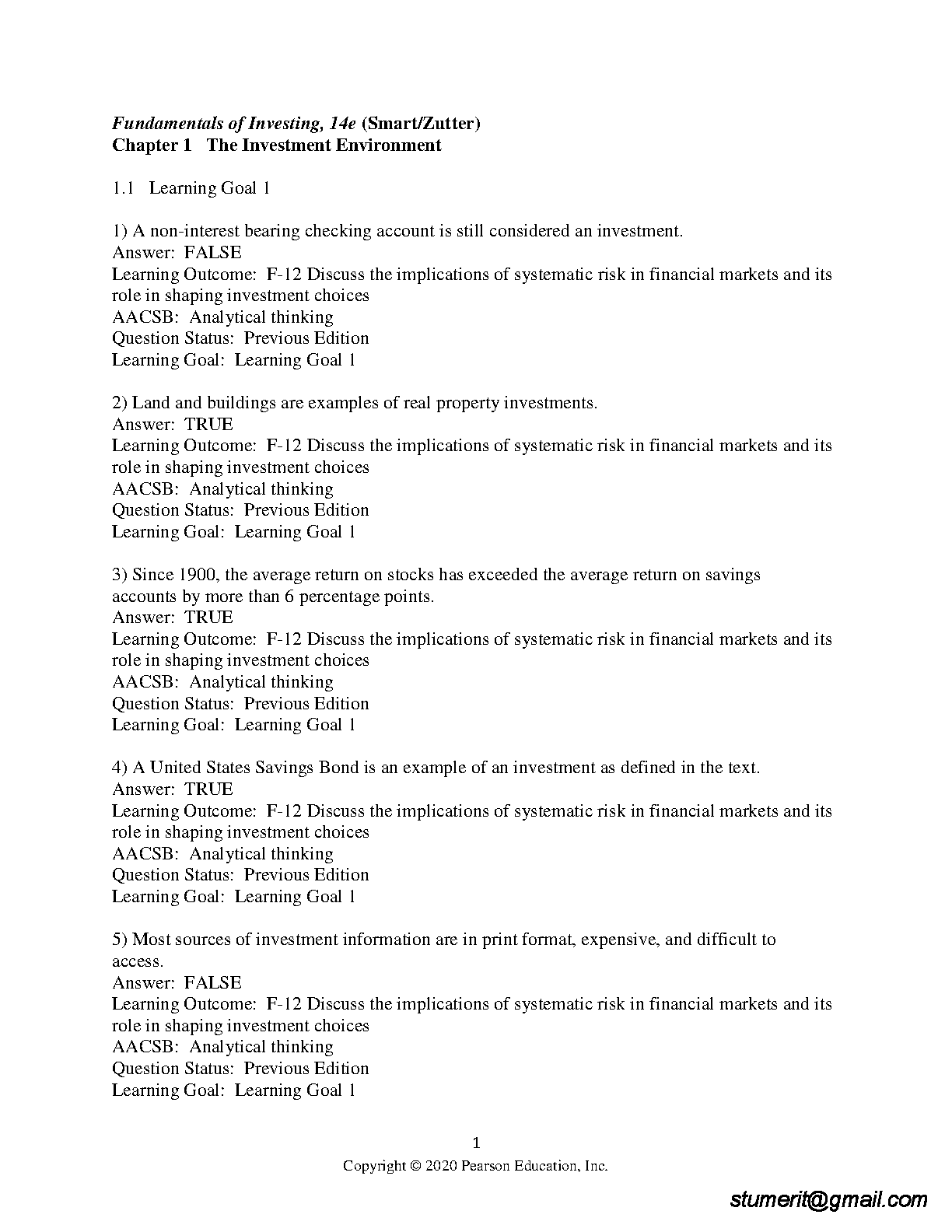 Comprehensive test bank and solution manual for Fundamentals of Investing 14th Edition by Scott B. Smart and Zutter, designed to help students prepare for exams and achieve academic success.