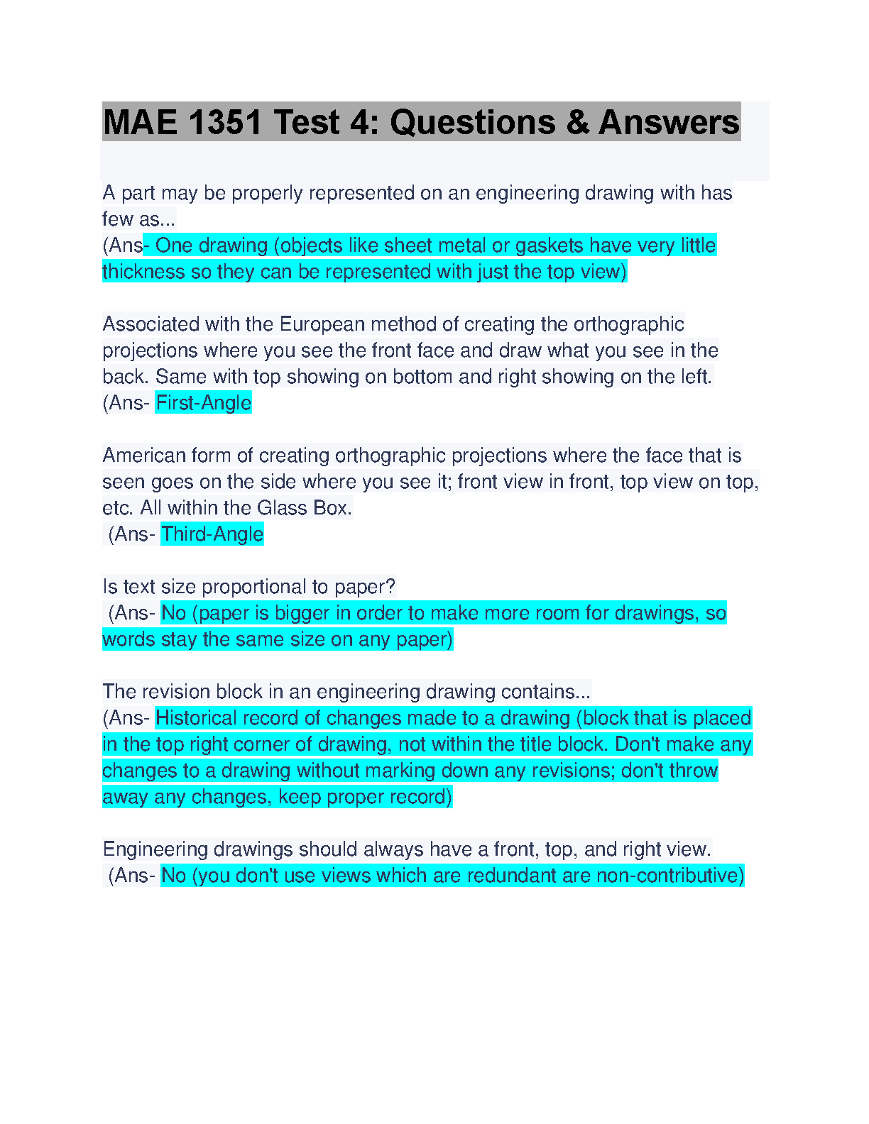 MAE 1351 Test 4: Questions & Answers - Pass Your Exam on the First Attempt