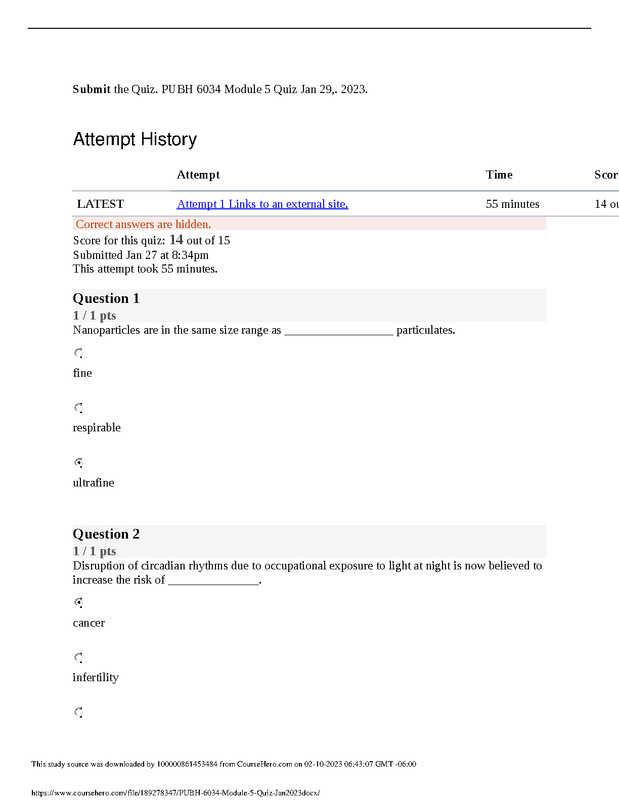 PUHB 6034 Module 5 Quiz - Public Health, Environmental and Occupational Health - 2024/2025 Edition