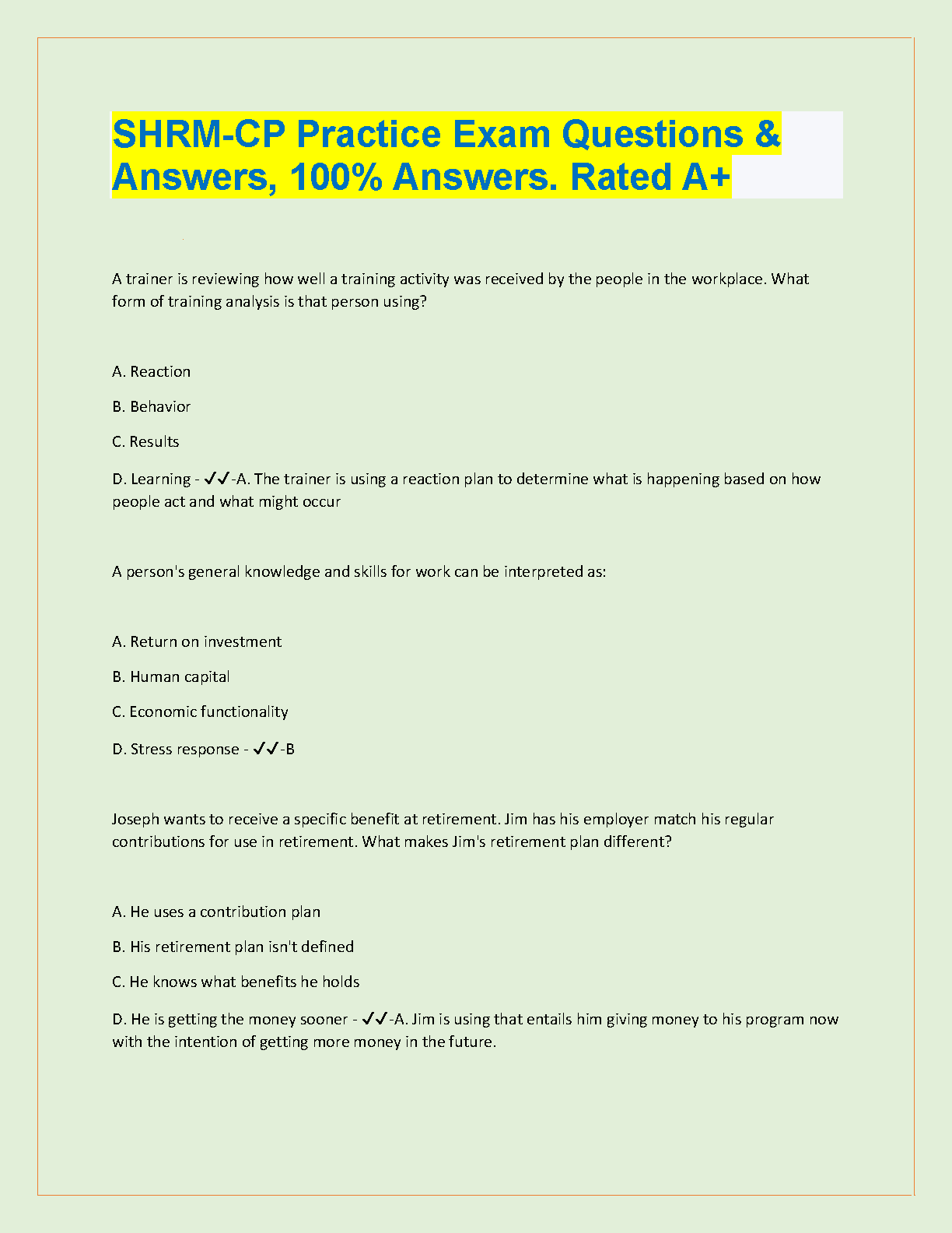SHRM-CP Practice Exam Questions & Answers, 100% Answers. Rated A++