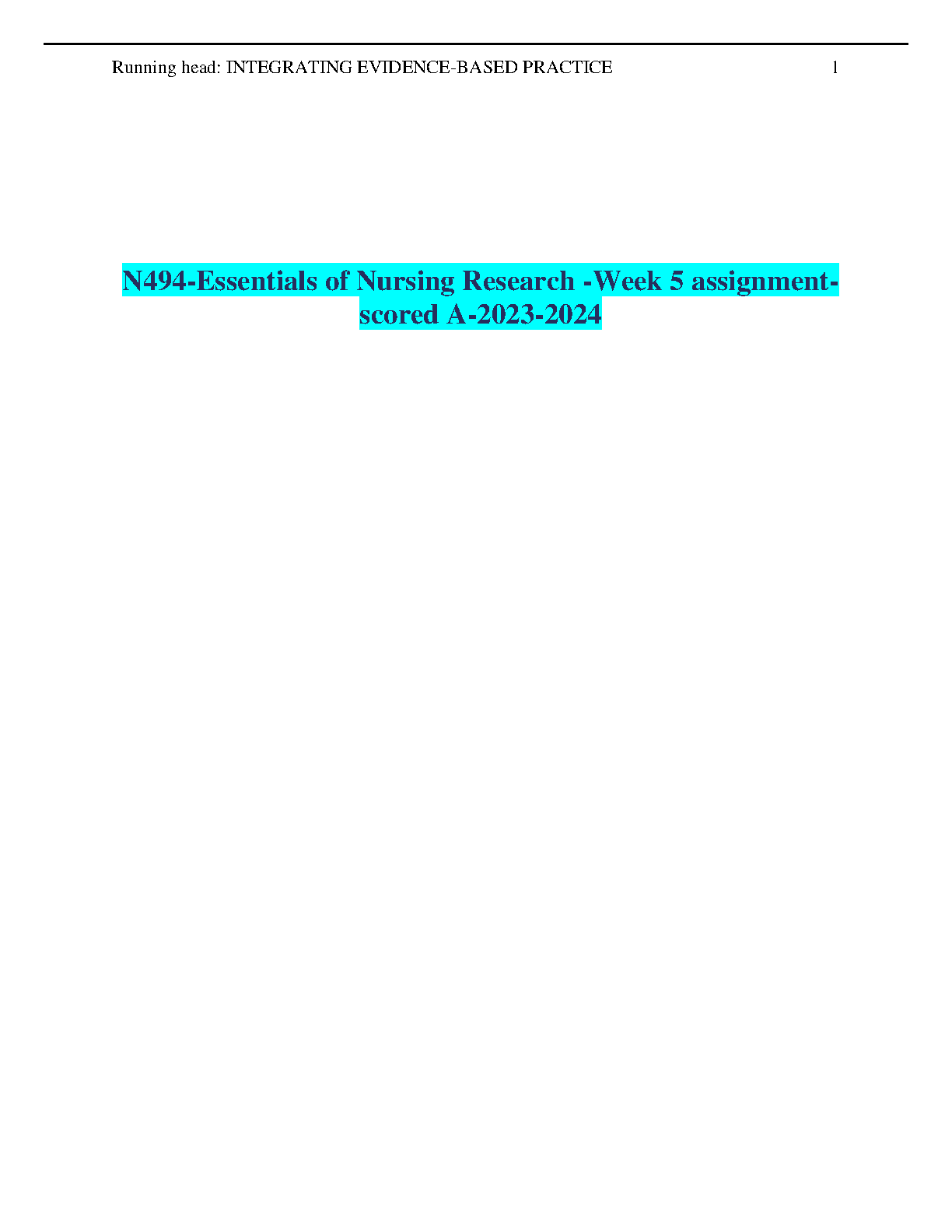 N494 Essentials of Nursing Research - Week 5 Assignment - scored A - 2023-2024