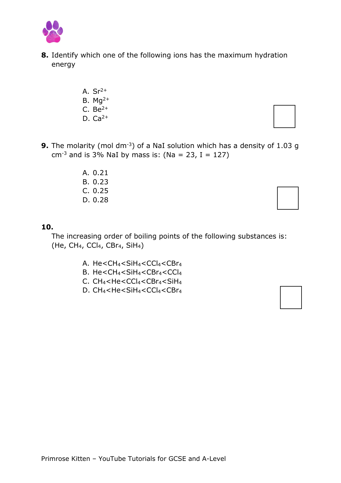 OCR A AS CHEMISTRY PAPER 1 2023 QUESTION PAPER WITH MARK SCHEME (Breadth in Chemistry)