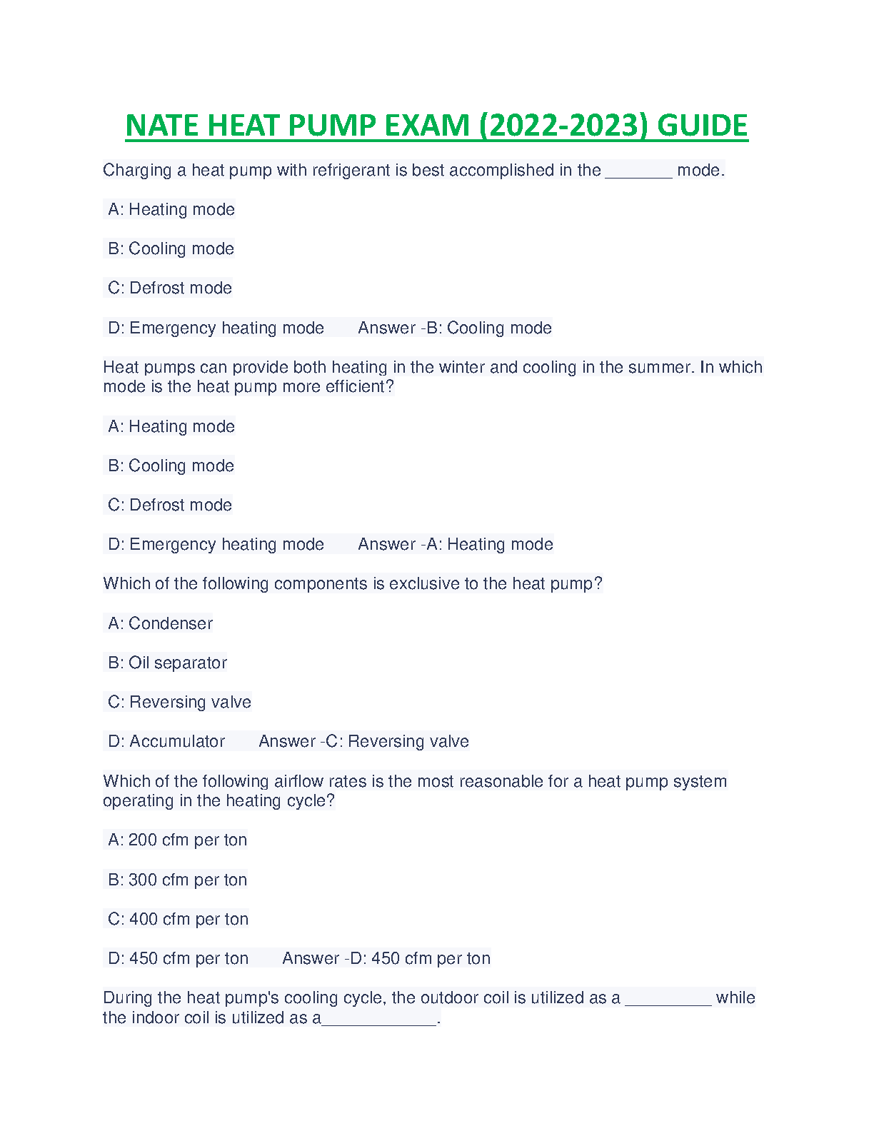 Prepare for your NATE Heat Pump Exam with this comprehensive guide! This resource covers all the essential topics you need to know, including charging procedures, efficient operation in different modes, and understanding key components. This guide is perfect for those wanting to master the fundamentals of HVAC systems and ensure a successful outcome on their exam.