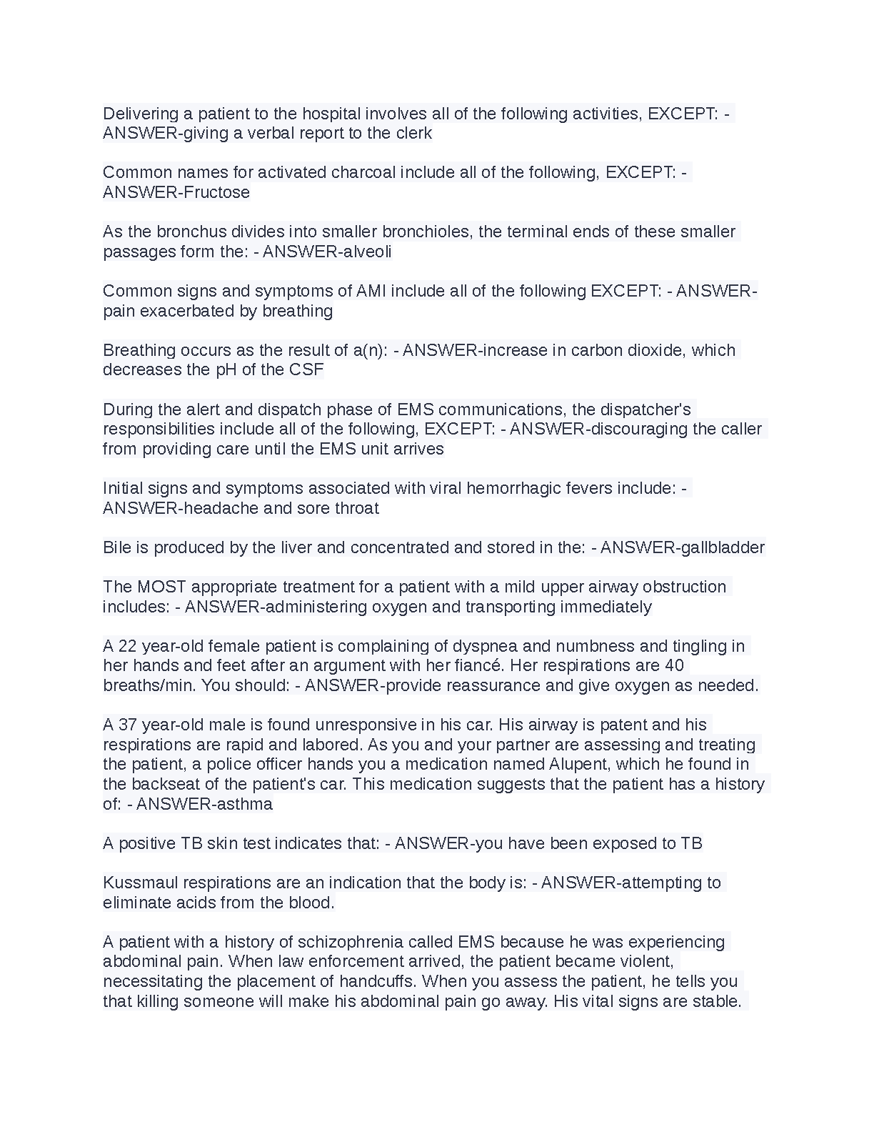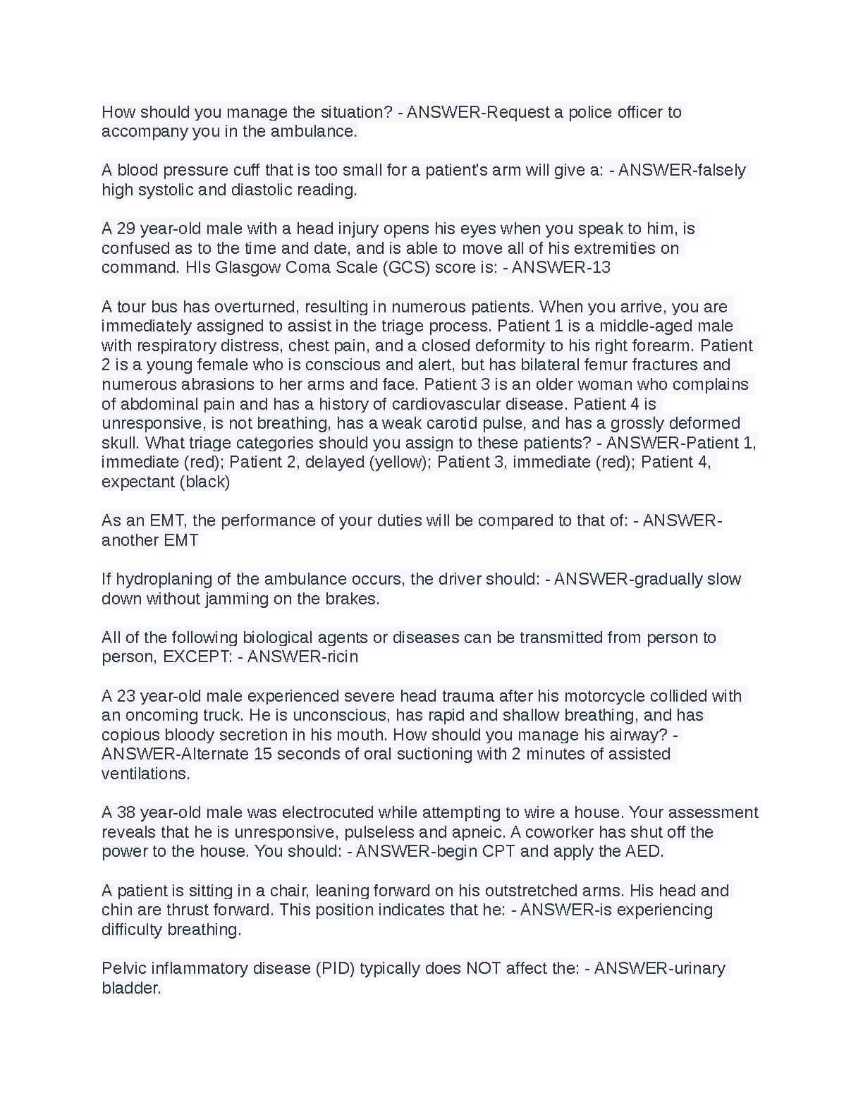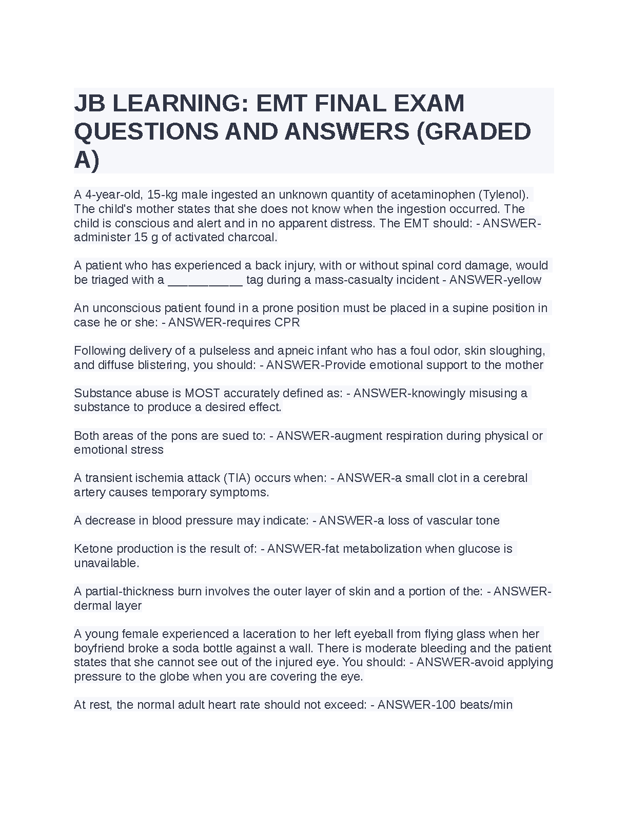 EMT Final Exam Questions and Answers (Graded A) - [Author's Name] Edition