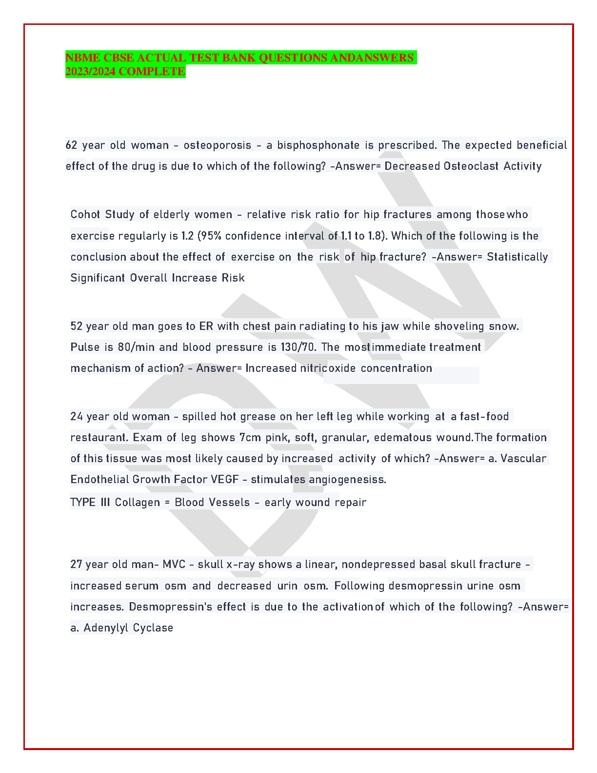 NBME CBSE Actual Test Bank Questions and Answers 2023/2024 Graded A+