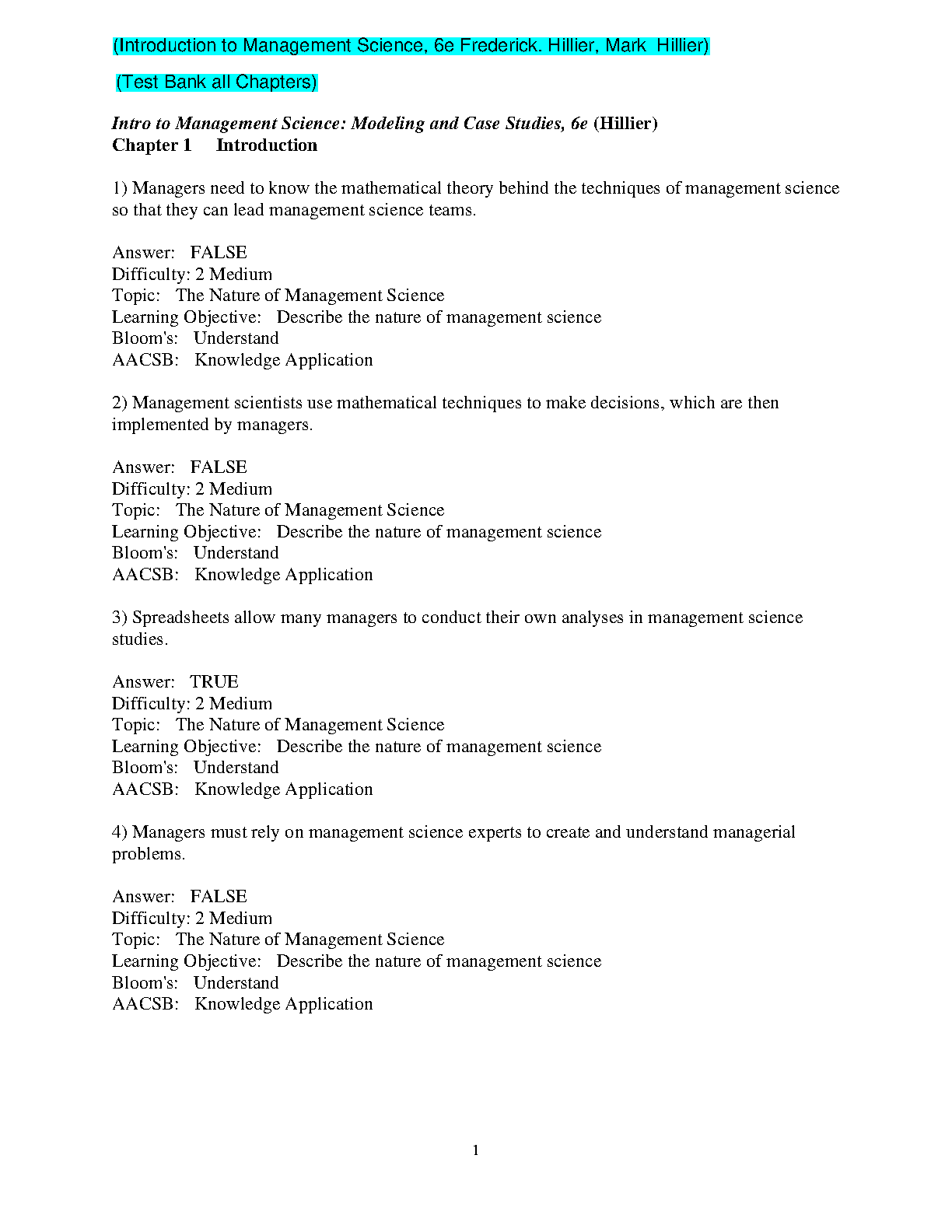 Introduction to Management Science 6e by Frederick Hillier and Mark Hillier - Test Bank for All Chapters