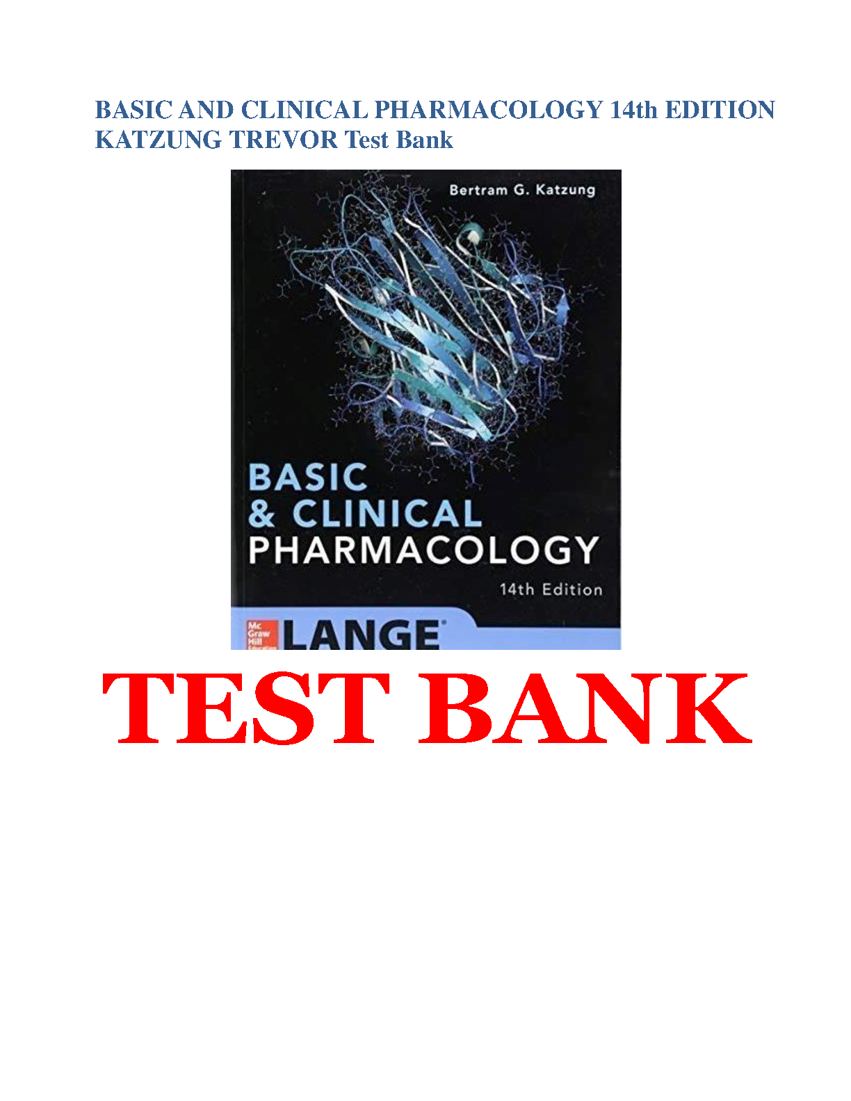 Ace your Pharmacology Exams with this comprehensive test bank for the 14th edition of Basic and Clinical Pharmacology by Bertram G. Katzung and Susan B. Masters. This resource includes hundreds of practice questions covering all aspects of the textbook, helping you understand key concepts and prepare for your exams with confidence.