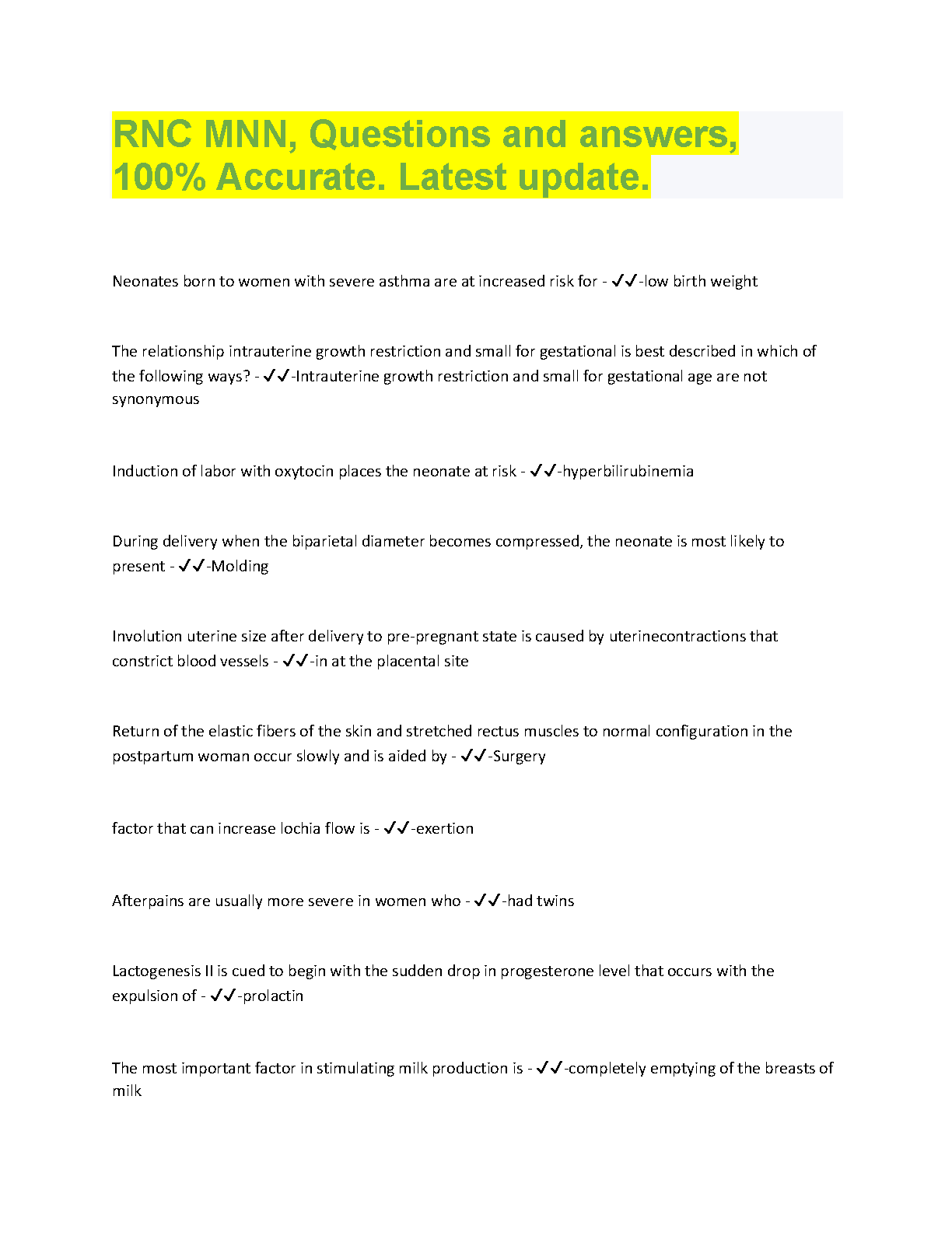 Prepare for your RNC MNN Exam and achieve success on your first attempt with this comprehensive collection of questions and answers, carefully curated for the 2024/2025 academic year. This resource is your key to mastering the essential concepts and boosting your confidence for a successful exam outcome.