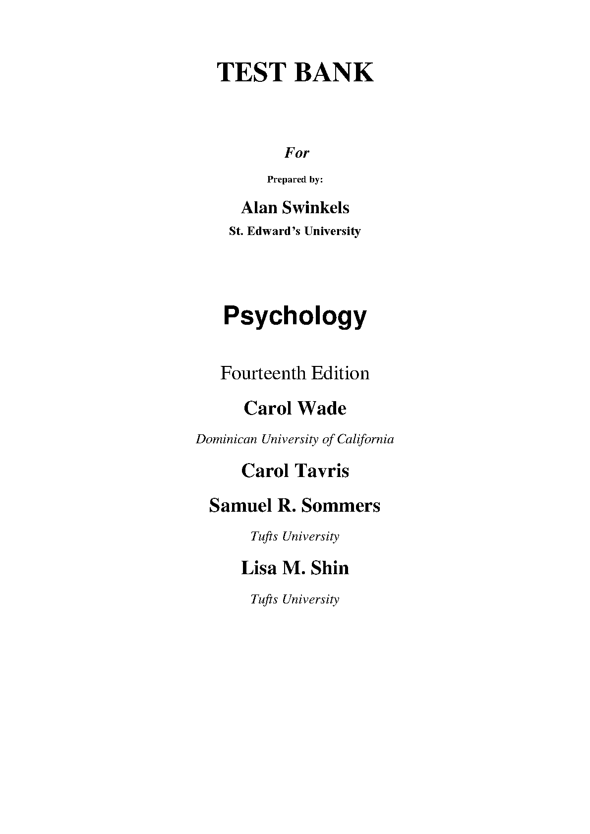 Psychology 14th Edition Test Bank by Carol Wade, Carol Tavris, Samuel R. Sommers, Lisa M. Shin
