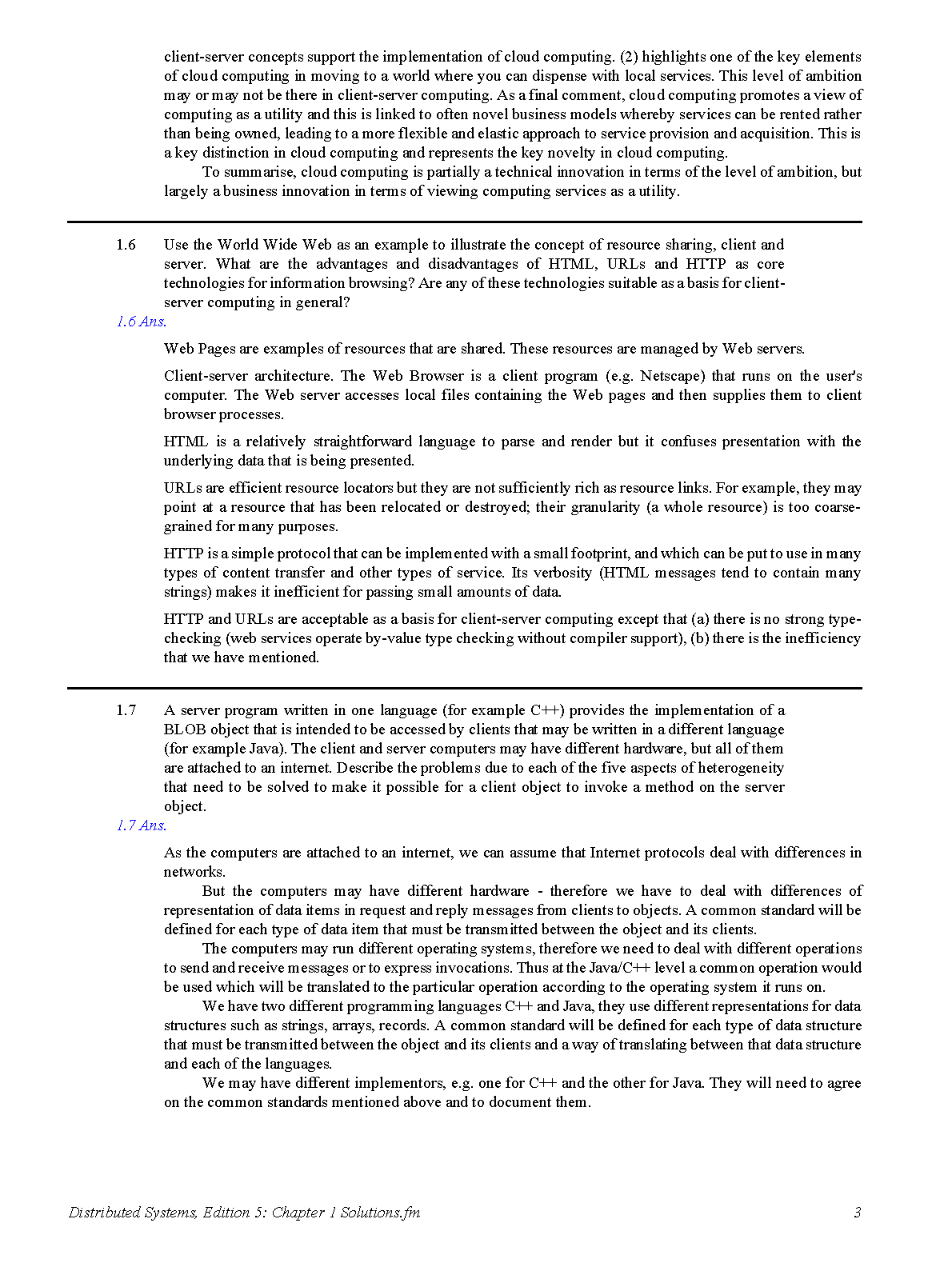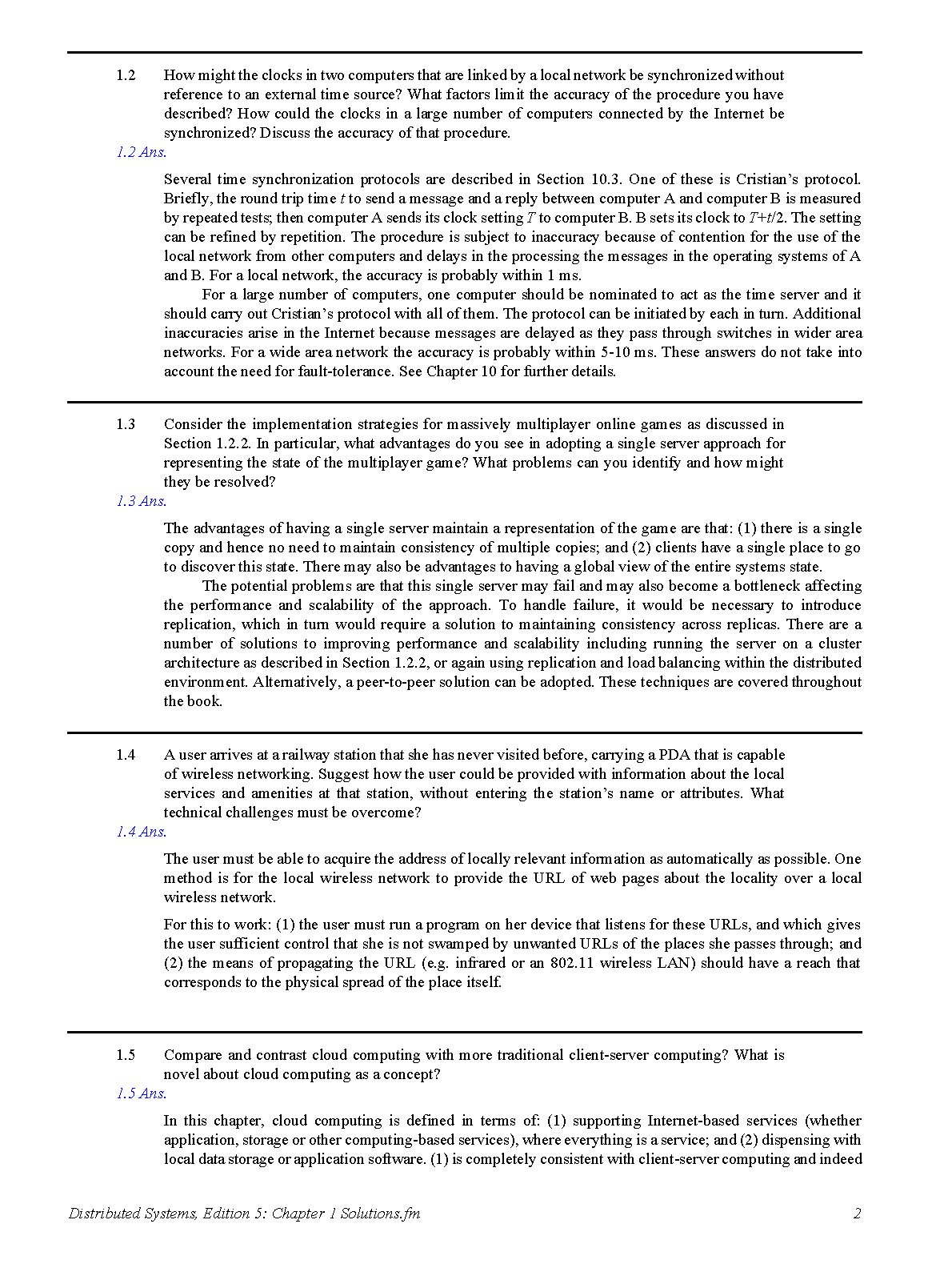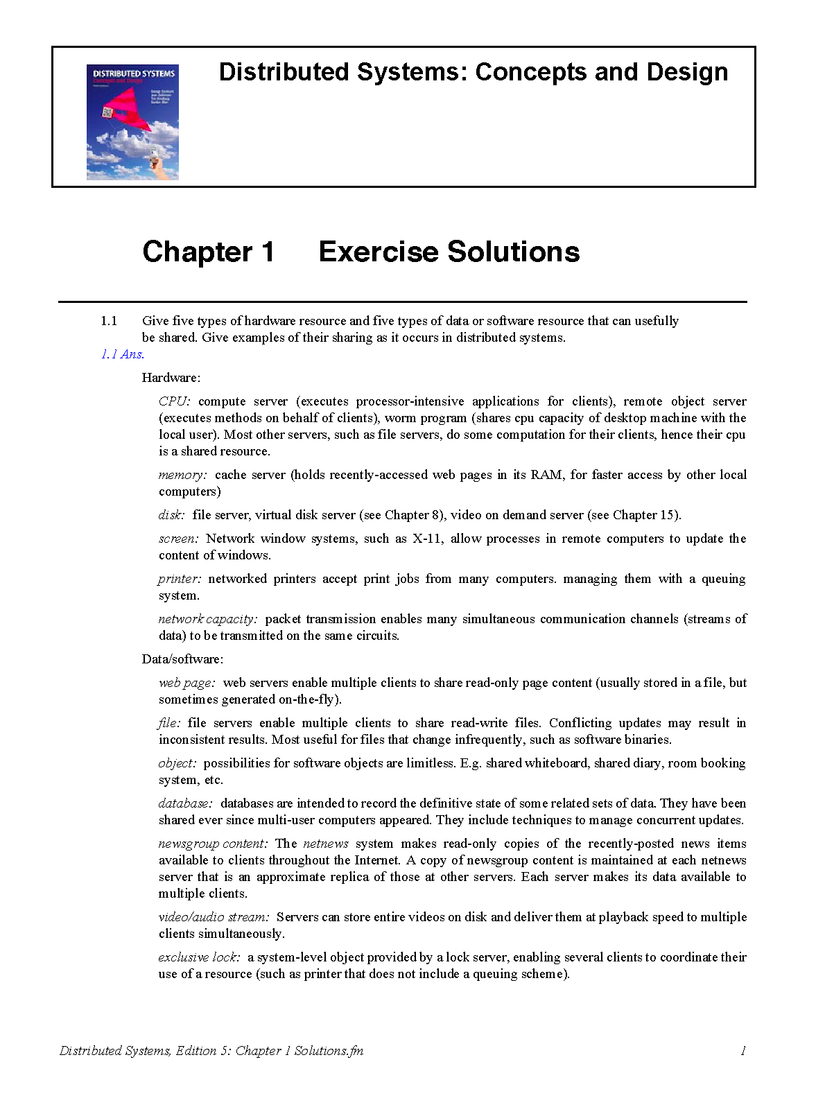 Get a head start in your studies with the complete exercise solutions for Chapter 1 of the 5th Edition of Distributed Systems: Concepts and Design by Coulouris, Dollimore, and Kindberg. This resource is essential for students looking to understand the concepts and practices of distributed systems. Ensure exam success and avoid resits by mastering these solutions.