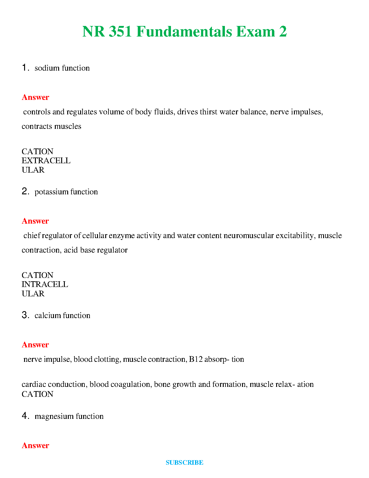 Ace your NR 351 Fundamentals Exam with this comprehensive study guide. Learn the functions of sodium, potassium, calcium, and magnesium, and master the essential concepts needed for success. This resource is designed to help you pass on your first try, avoiding the stress and cost of resits.