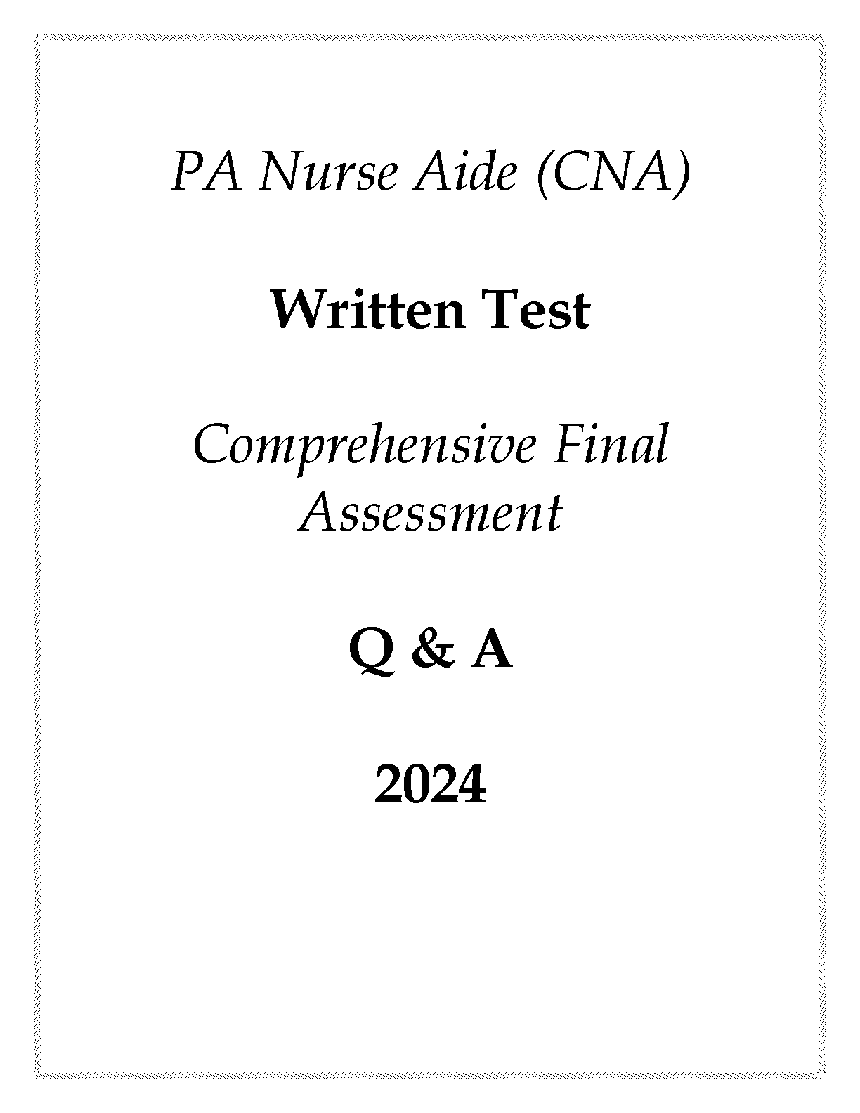 Get ready to pass your PA Nurse Aide (CNA) exam with flying colors! This comprehensive final assessment Q&A resource is designed to help you master the essential knowledge and skills required for success. Packed with realistic practice questions and detailed answers, this guide will give you the confidence you need to tackle your exam head-on and avoid resits.