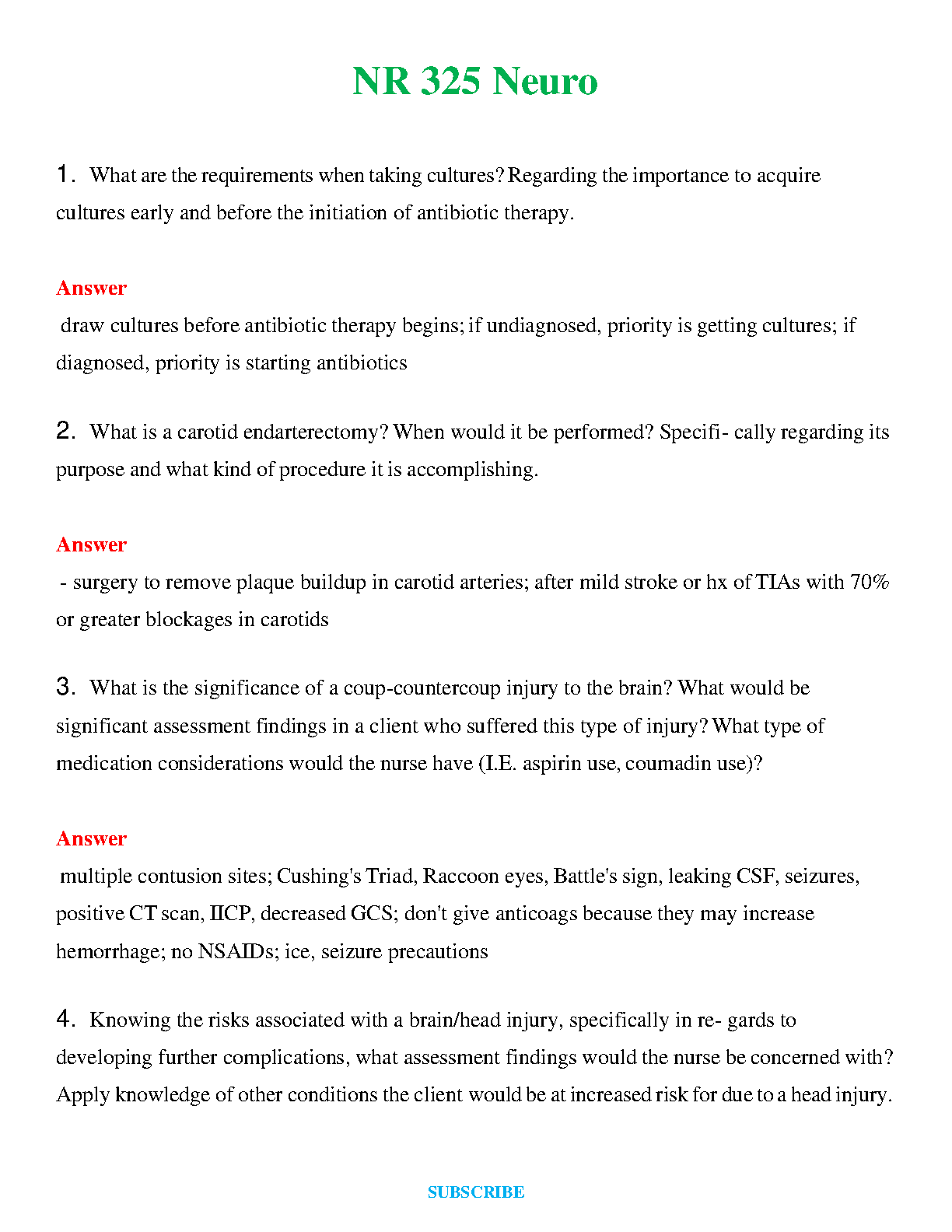 Ace your NR 325 Neuro Exam with this comprehensive study guide. It's designed to help you understand key concepts, master challenging topics, and build your confidence for success on the exam. With detailed explanations, practice questions, and a clear, concise style, this guide will be your go-to resource for exam prep.