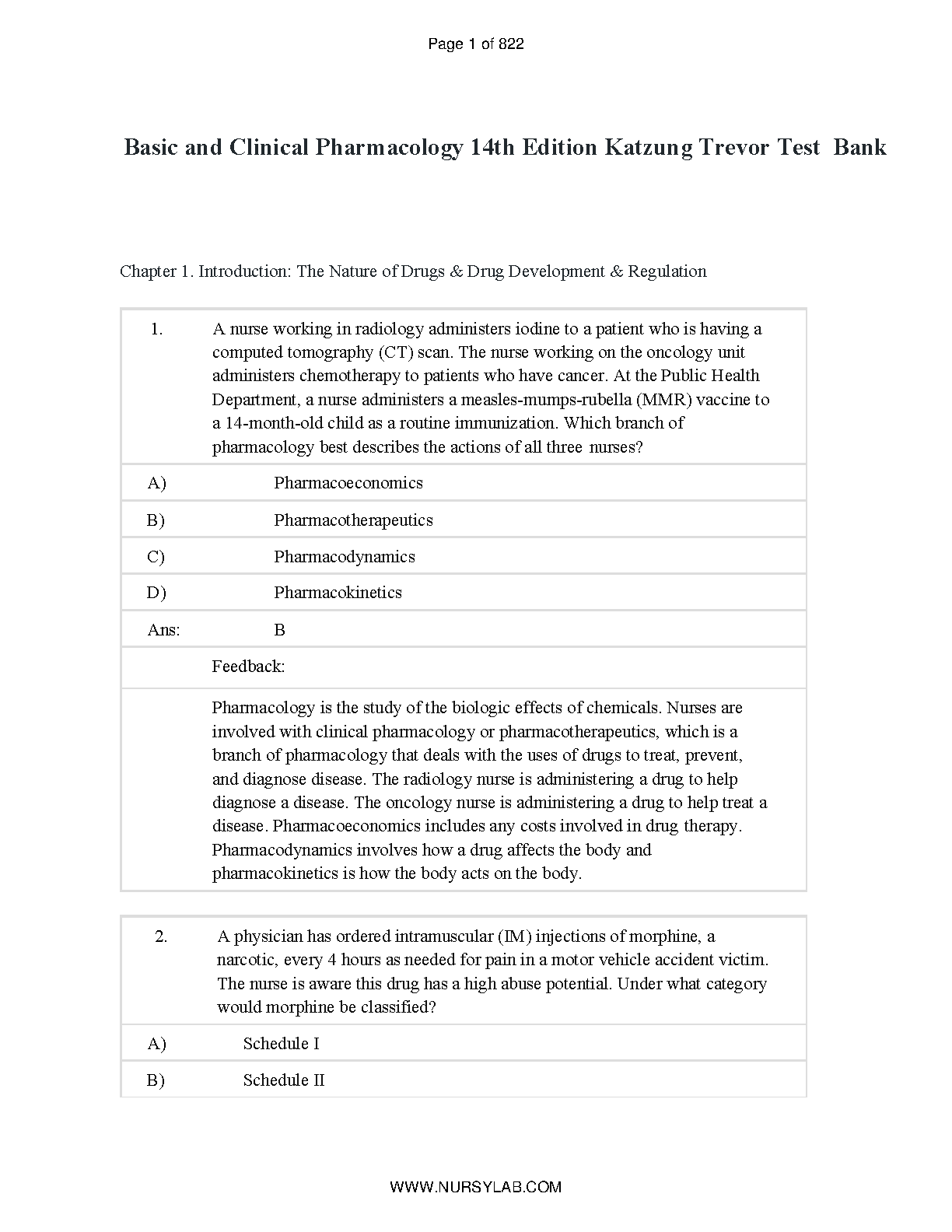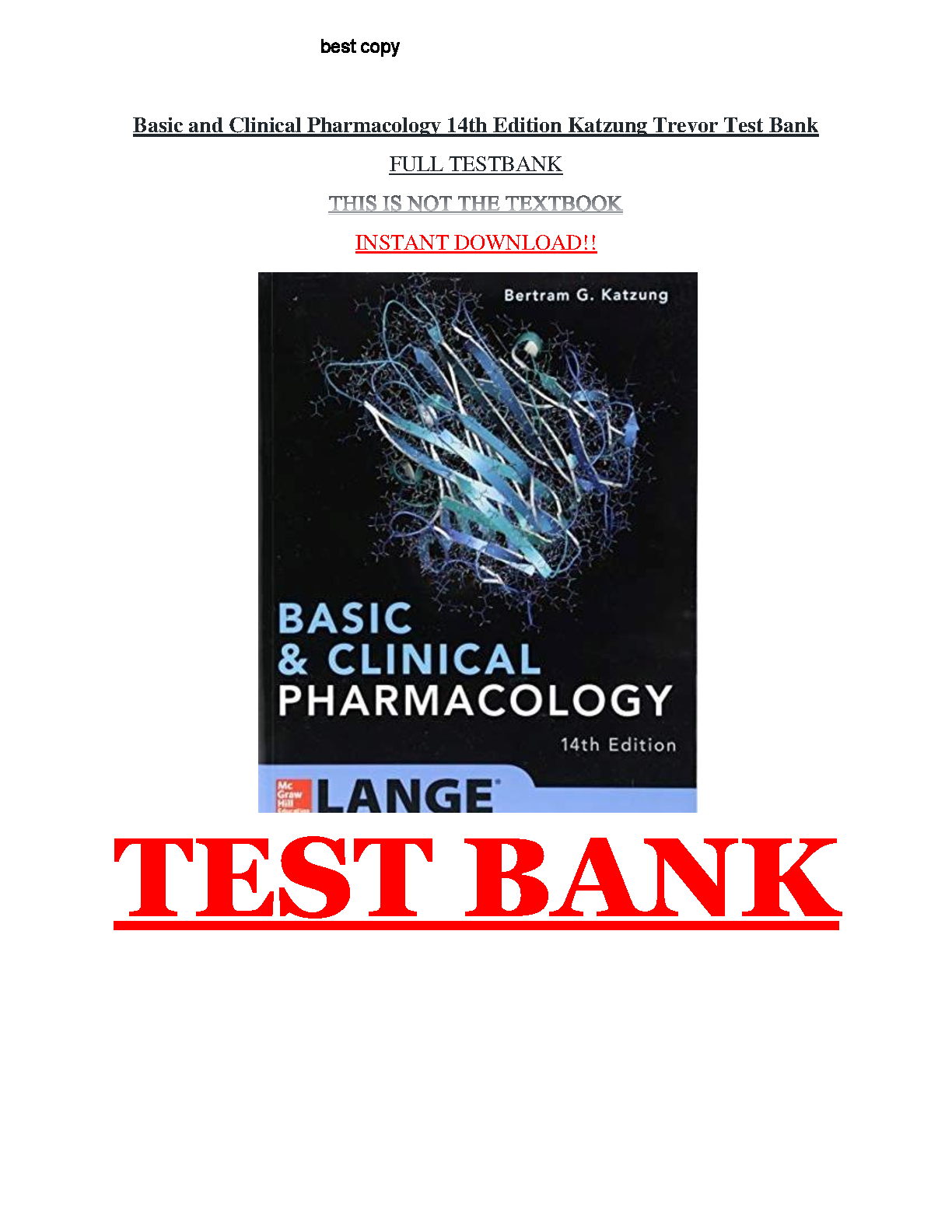 This resource contains a full test bank for the 14th edition of Basic and Clinical Pharmacology by Bertram G. Katzung and Susan B. Masters. It is a great resource for students looking to ace their pharmacology exams.