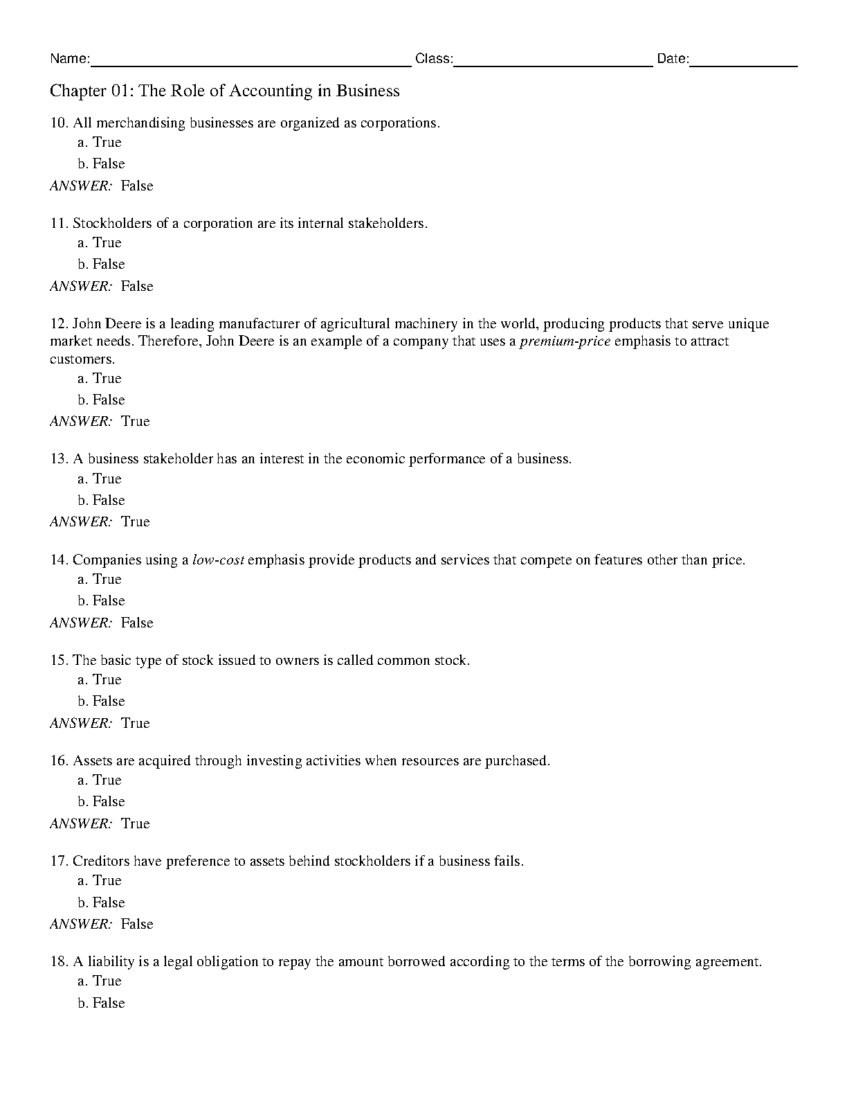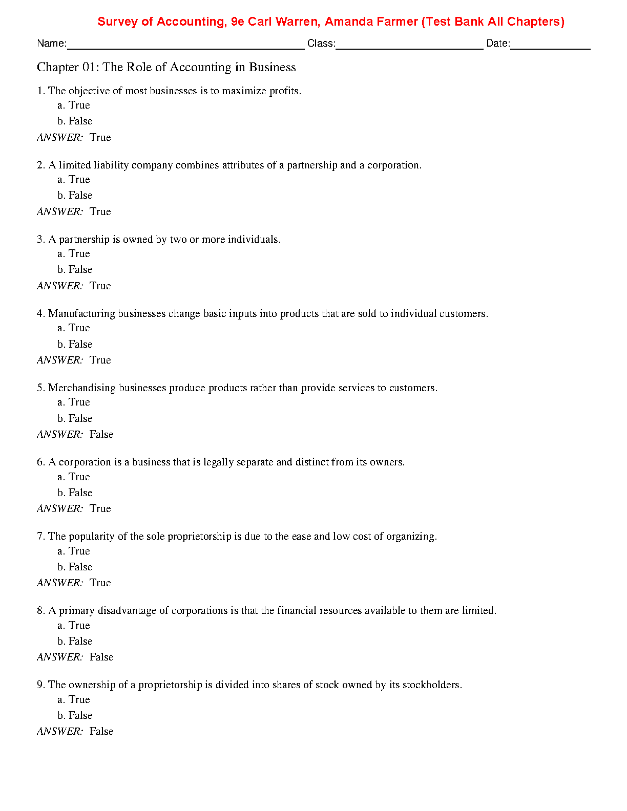 Survey of Accounting, 9e Carl Warren, Amanda Farmer - Test Bank (All Chapters)