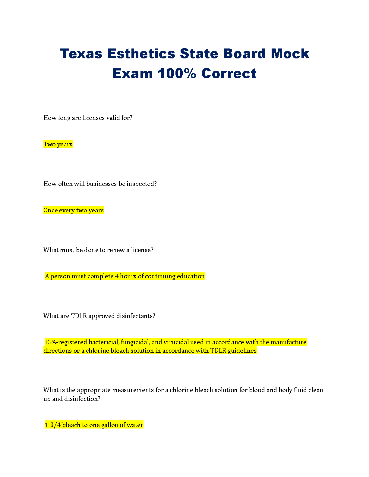 Texas Esthetics State Board Mock Exam 100% Correct for 2024/2025