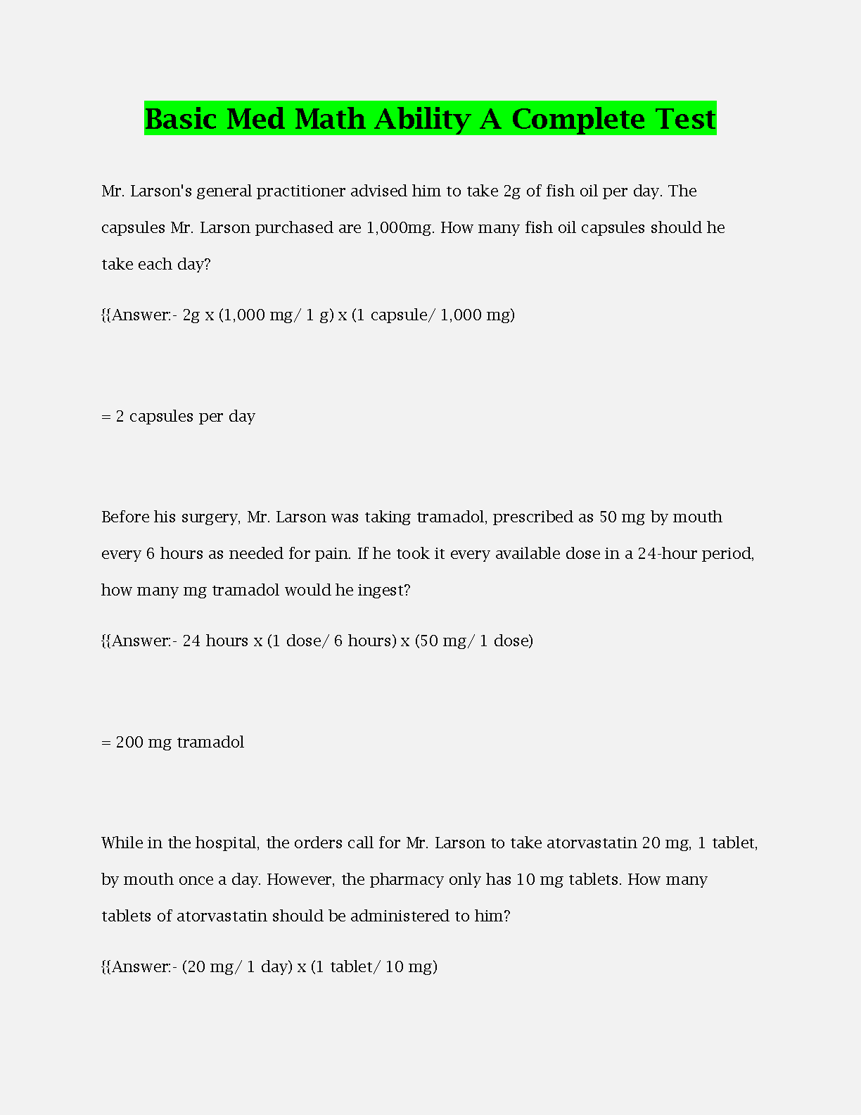 Basic Med Math Ability A Complete Test - A Guide To Mastering Medical Calculations